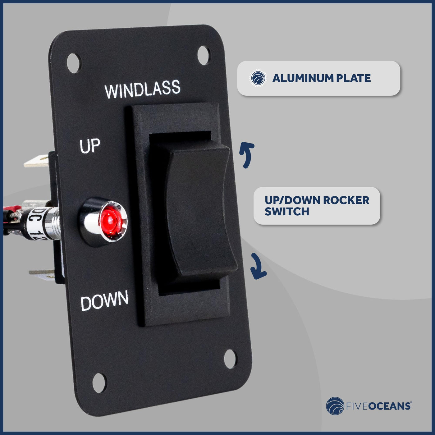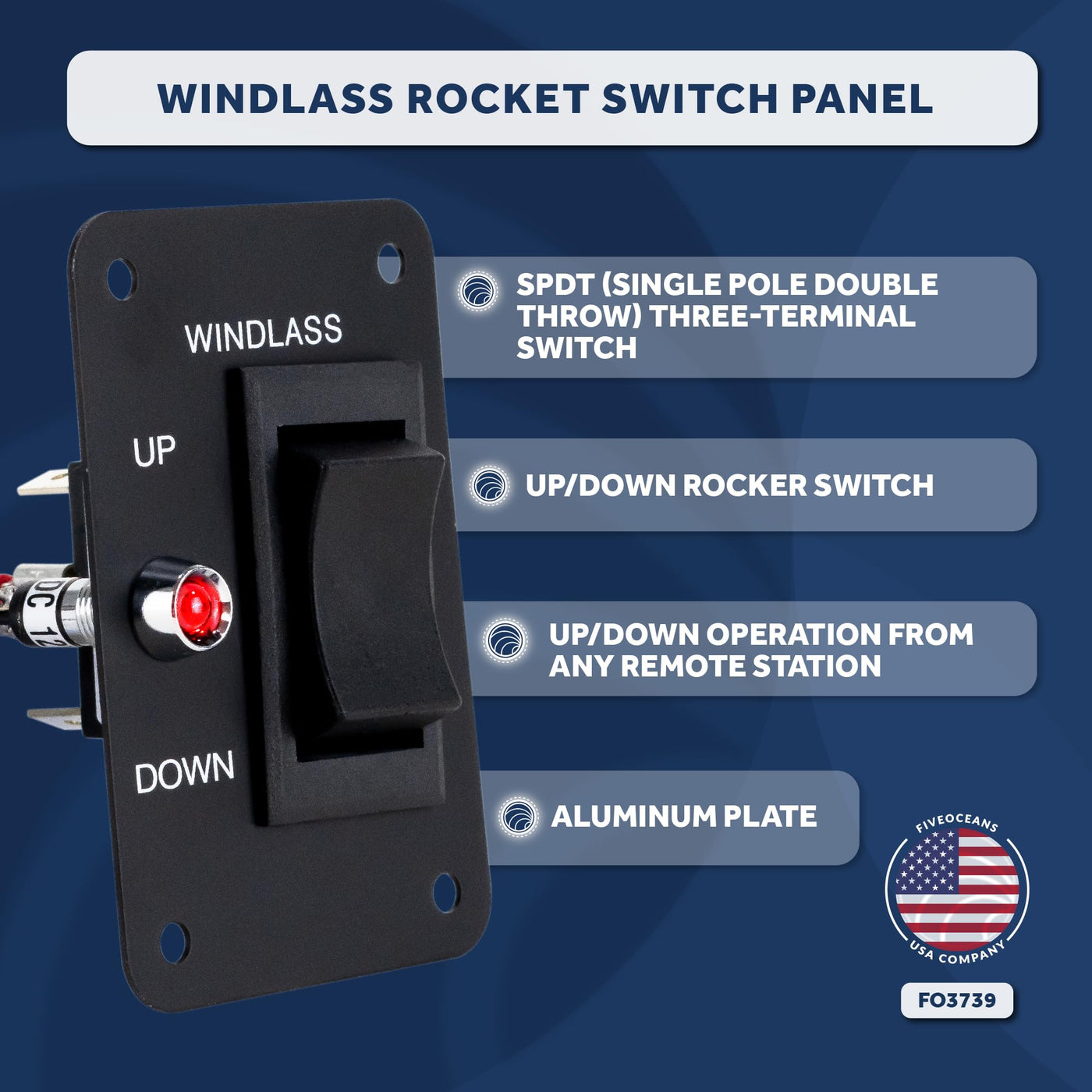 Suitable For: Windlass Rocker Switch For Dc Electric Windlasses Running On 12 Volts With The Use Of A Dual-Direction Solenoid Control Box. Red Led Indicator When Powered On.Installation: Allows Remote Station Windlass Control From Wheelhouse Or Flybridge. Mounting Hardware 4 Steel Screws Not Included.Marine-Garde Materials: Made From Uv-Stabilized Abs Plastic And Aluminum Plate. Plate Dimensions: 3'' (76.2Mm) X 2''(50.8Mm).We Highly Recommend: Rocker Switch For The Five Oceans Atlantic And Pacific Windlass Series 600/900/1000/1500W And Most Windlass Brands.[Important Notice]: It Does Not Handle Windlass Current Draw But Easily Handles Solenoid Current. It Requires Being Connected To A Solenoid.Product Number: Fo-3739