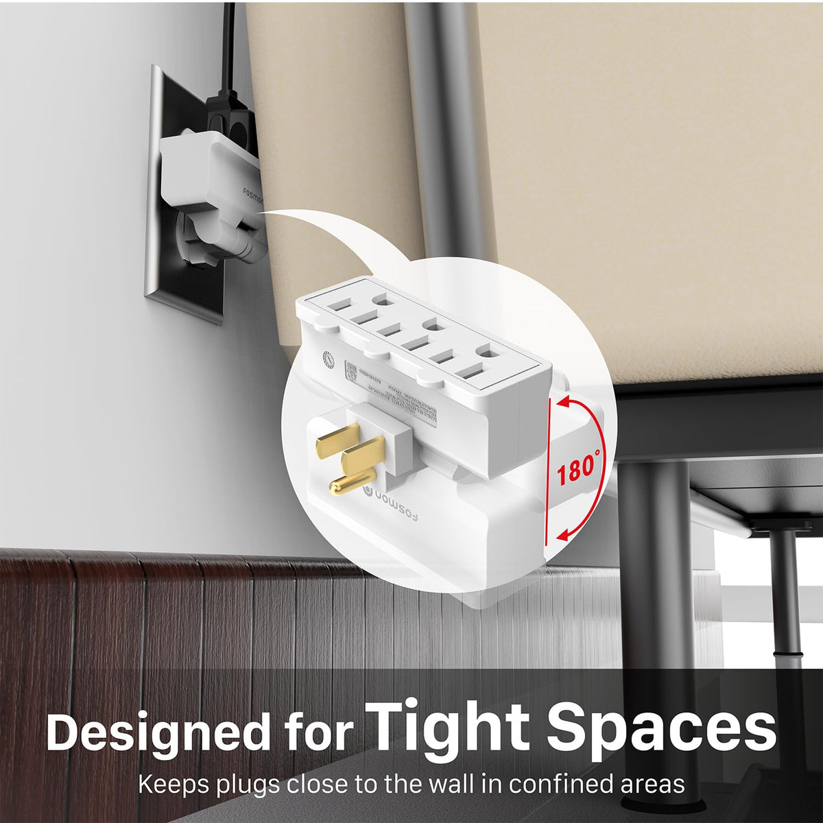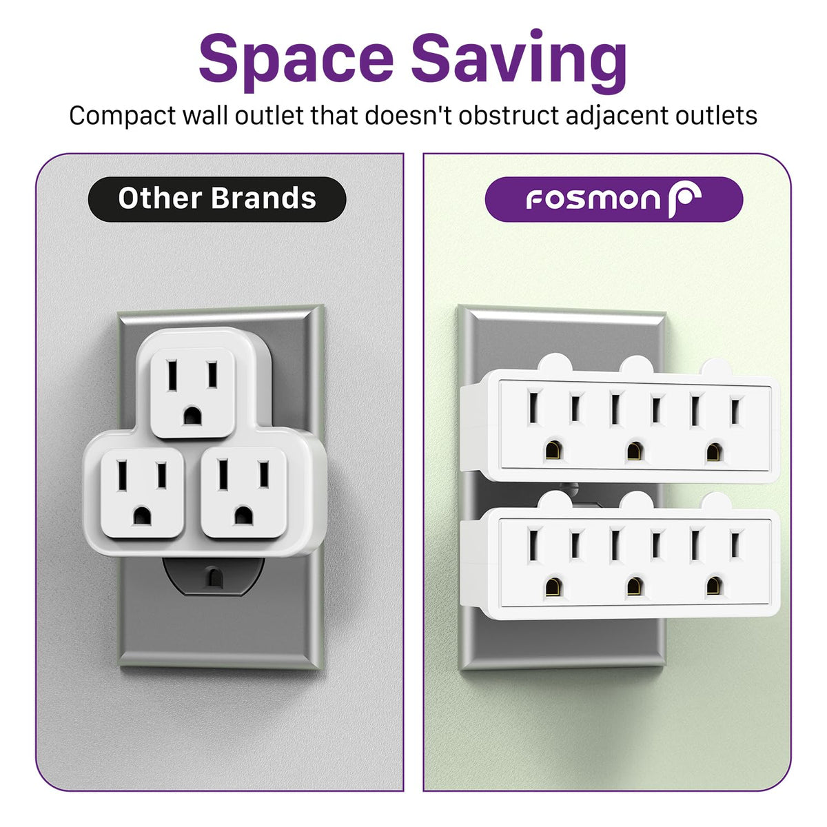 Fosmon 3 Outlet Adapter, 3 Way Rotating Outlet Plug Adapter, Swivel Plug Outlet 90 Degree Right Angle Plug Adapter, Three Way Rotating Electrical Outlet Wall Extender Indoor, 3-Prong, Grounded