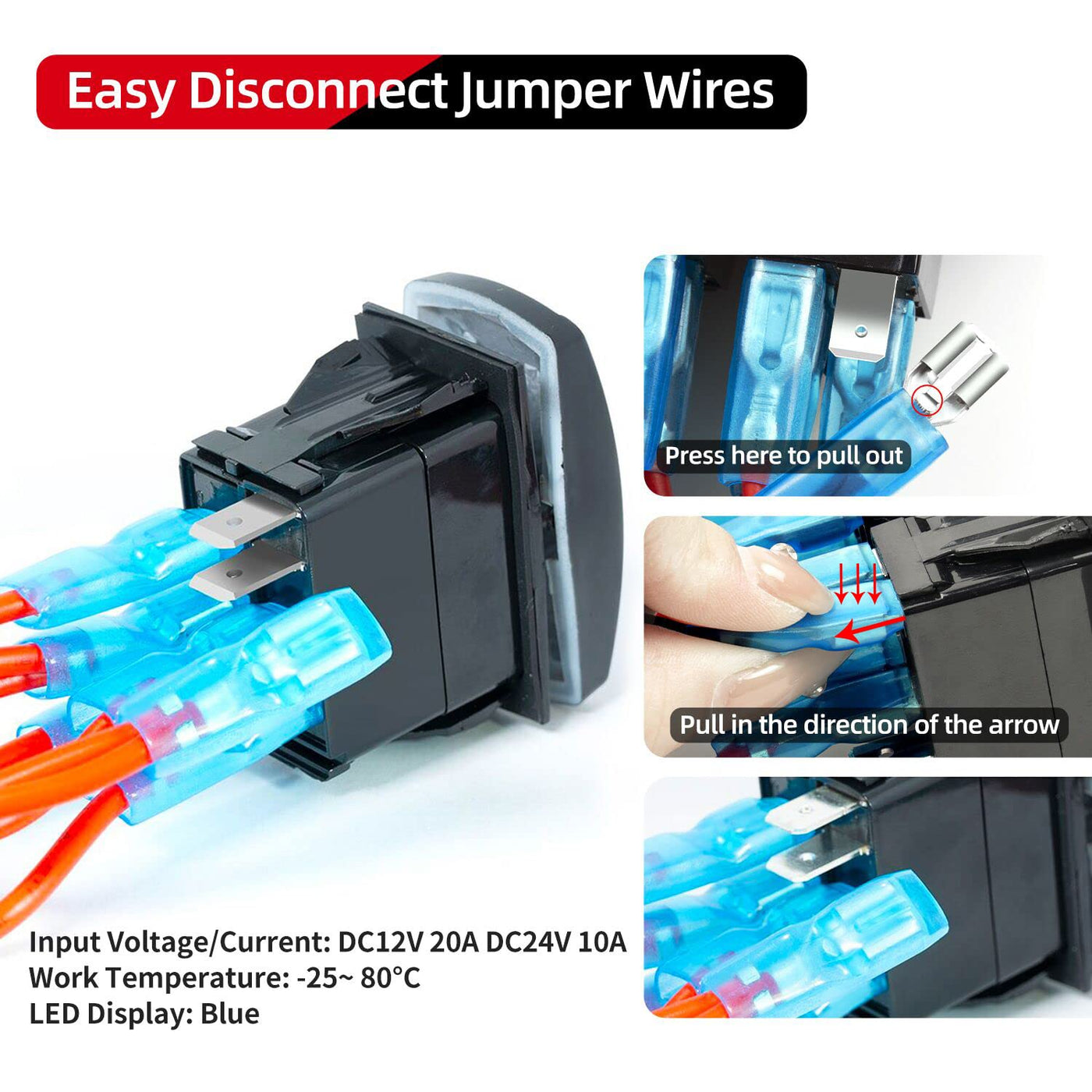 Fxc Rocker Switch Aluminum Panel 5 Gang Toggle Switches Dash 5 Pin On/Off 2 Led Backlit For Boat Car Marine Blue