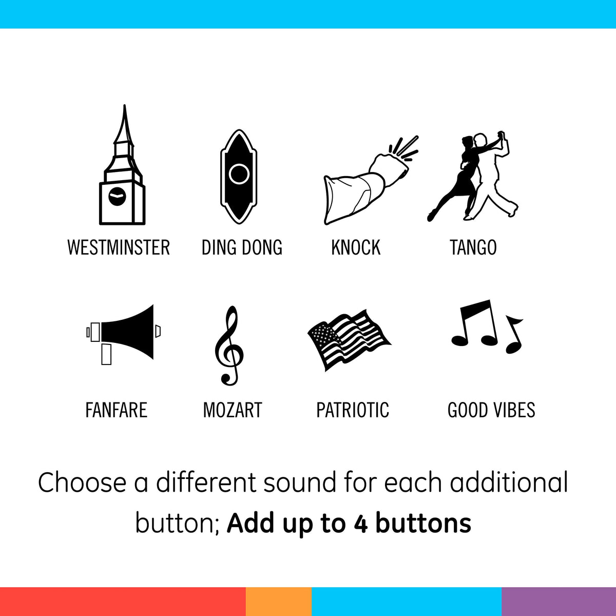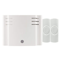 Always Know When Your Guests Arrive With A Ge-Branded Battery-Operated 8-Melody Doorbell Kit. Included In This Doorbell Kit Are One Battery-Operated Receiver (150Ft. Range) And Two Push Buttons With Cr2032 Batteries And Mounting Hardware. The Battery-Operated Doorbell Pairs With Up To Four Wireless Push Buttons And Features Eight Melodies (Ding Dong, Fanfare, Good Vibes, Knocks, Mozart, Patriotic, Tango And Westminster) To Customize Multiple Entryways With Separate Sounds. For Additional Personalization, Adjust The Sound Level Using Four Volume Settings. The Push Buttons Include Cr2032 Batteries For Quick And Easy Installation And Come Already Paired With The Receiver. Mounting Instructions Are Included For Both The Push Buttons And Receiver, Which Operates Using Three C Batteries (Not Included). The Wireless Setup, Provided Mounting Hardware And Up To A 150Ft. Range Make Installation Of The Doorbell Kit A Breeze. The White Finish Allows The Doorbell And Button To Integrate Into Any D Cor. Give Your Visitors A Warm Welcome With A Ge-Branded Battery-Operated 8-Melody Doorbell Kit.