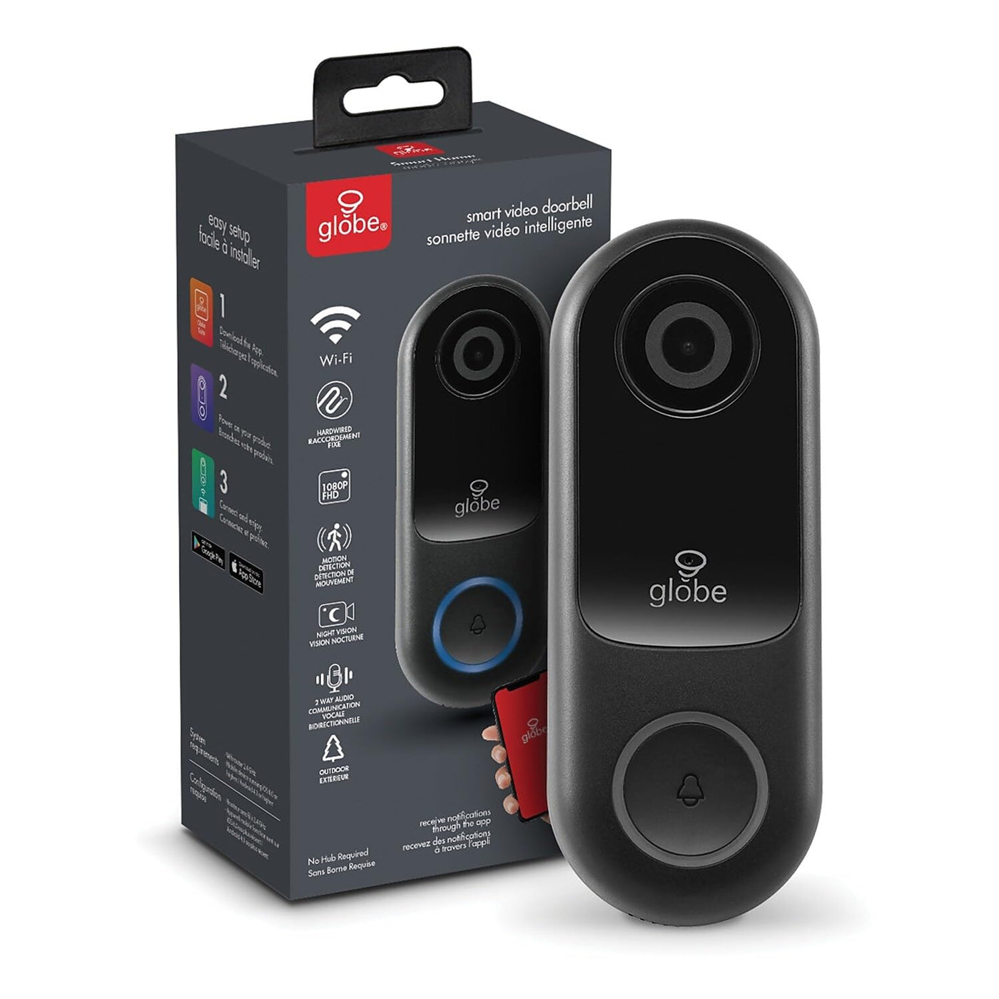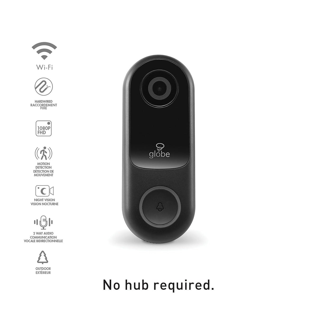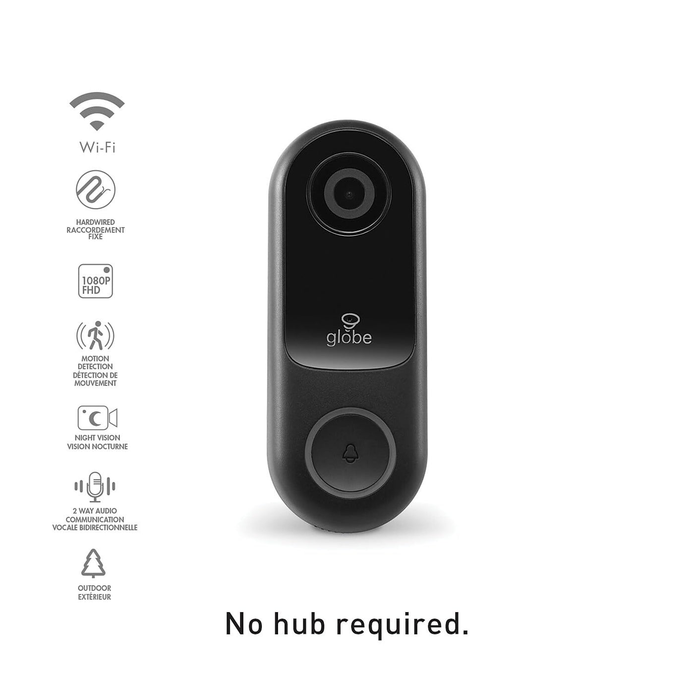 Globe Electric Wi Fi Smart Video Doorbell, Hardwired, No Hub Required, Ip54 Rated, 1080P, Motion Detection, 2 Way Voice, Night V