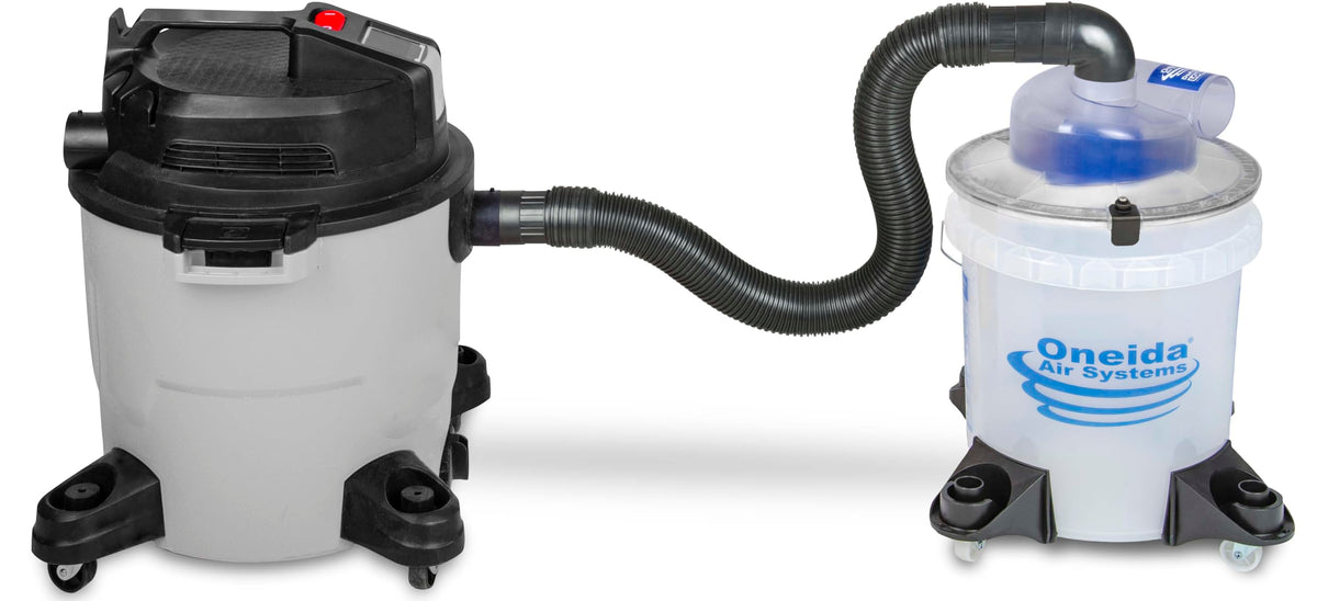 Q: What size bucket is included in the Dust Deputy Low-Pro Deluxe Kit?A: The Oneida Dust Deputy Low-Pro Deluxe Kit includes a durable, clear, 5-gallon dust bucket. This size is standard and allows for ample collection of dust and debris during your projects.