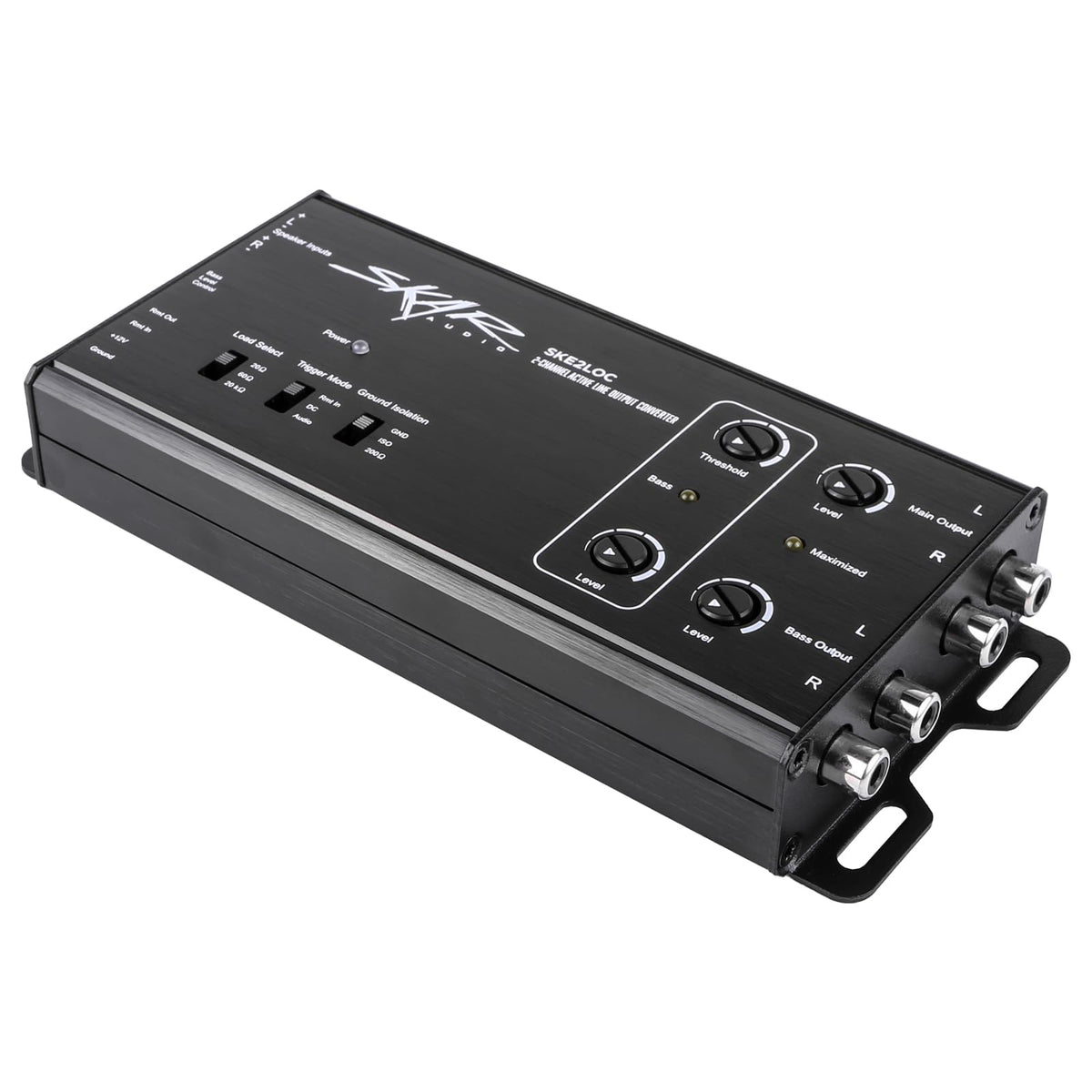 Q: What is the Skar Audio SKE2LOC 2-Channel Active Line Output Converter used for?A: The Skar Audio SKE2LOC is designed to convert speaker level signals from your car's factory stereo system into line level signals, allowing for easy integration with aftermarket amplifiers and subwoofers, ensuring optimal sound quality and performance.