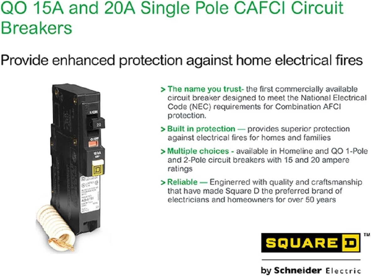 ' Plug In Circuit Breaker, Amps 20, Number Of Poles 1, Circuit Breaker Type Combination Arc Fault Circuit Interrupter, Ac Voltage Rating 120Vac, Dc Voltage Rating Not Rated, For Use With Qo Load Centers, Series Qo, Terminal Connection Screw Clamp, Min. Wire Size 14 Awg, Max. Wire Size 8 Awg, Length 4.75 In., Width 0.75 In., Depth 2.98 In., Standards Ul Listed, Csa Certified, Nec, Max. Air Rating 10Ka '