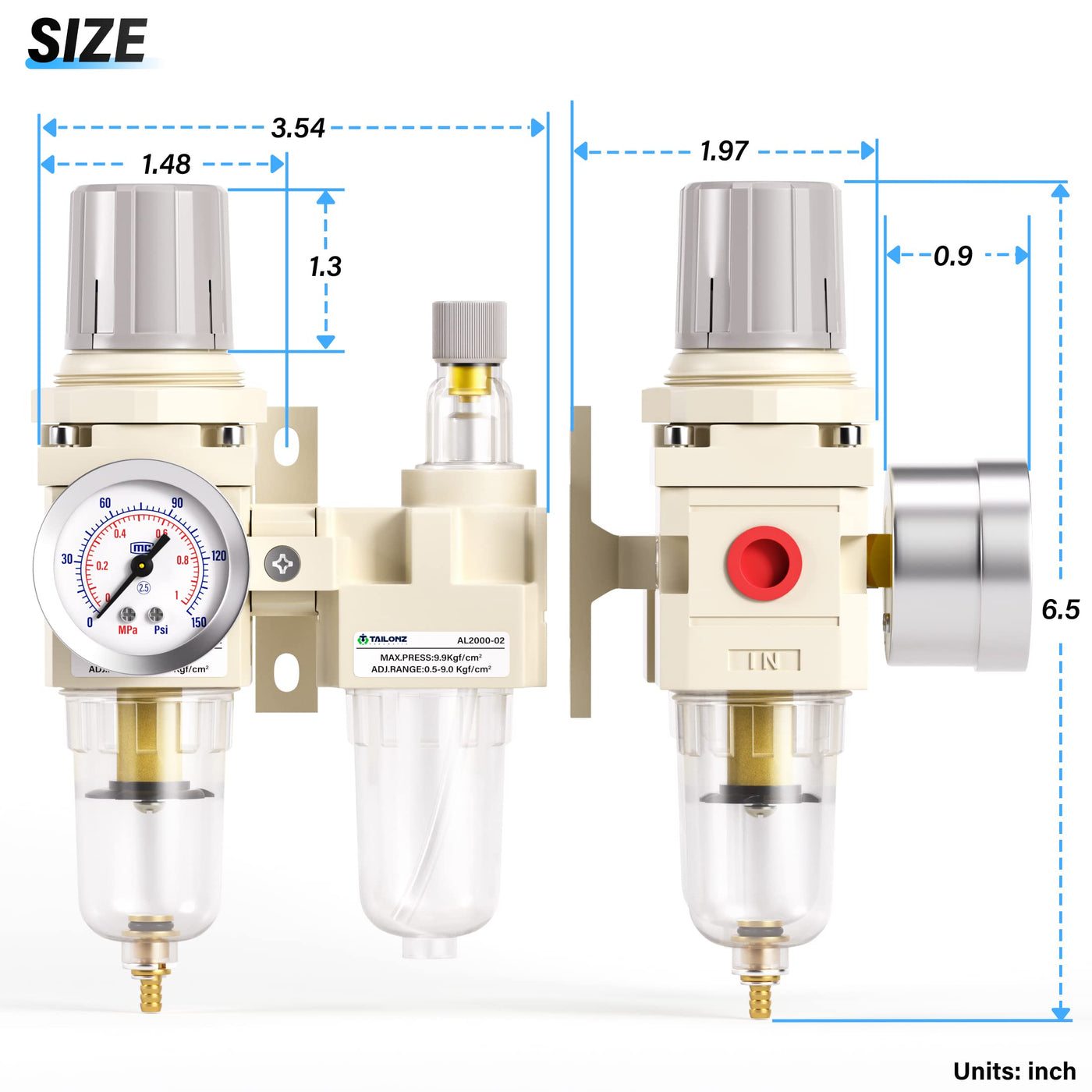 Tailonz Pneumatic 1/4 Inch Npt Air Filter Pressure Regulator Water/Oil Trap Separator Combo(0 145Psi),Air Tool Compressor Filter