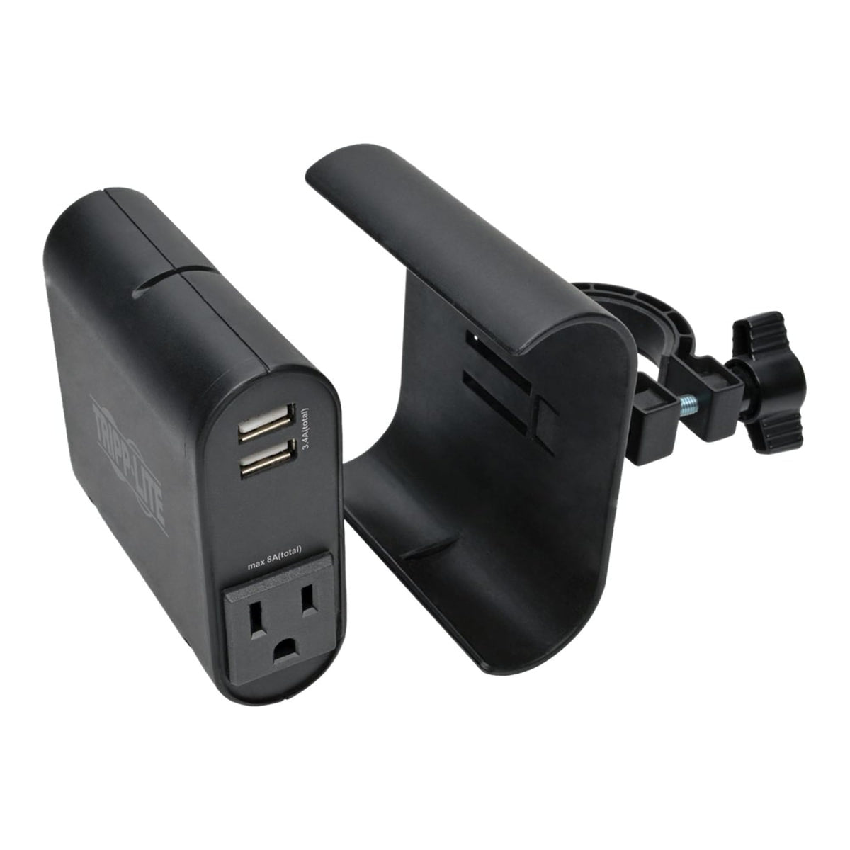 Ideal For Office, Healthcare, Education And More, The Tripp Lite Ac/Usb Charging Clip For Display Mounts Attaches To Your Display Mount Pole For Instant Access To Clutter-Free Device Charging. The Compact All-In-One Design Fits Most Display Mount Poles Up To 1.5 In. In Diameter For Ergonomically Friendly Power. It Features 2 Integrated Usb Ports For A Total Of 3.4 Amps To Charge Mobile Devices. It Also Includes 2 Nema 5-15R Outlets For Plugging In A Notebook Computer Docking Station Or Other Peripherals. No Longer Will You Have To Crawl Under Or Reach Behind Your Desk Just To Plug Something In. The Removable Charge Adapter Snaps Into A Holder, Which Clamps Securely To Your Display Mount Pole.