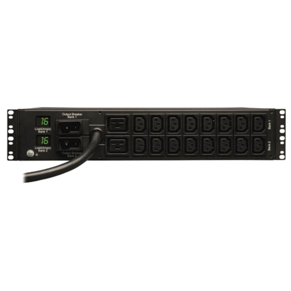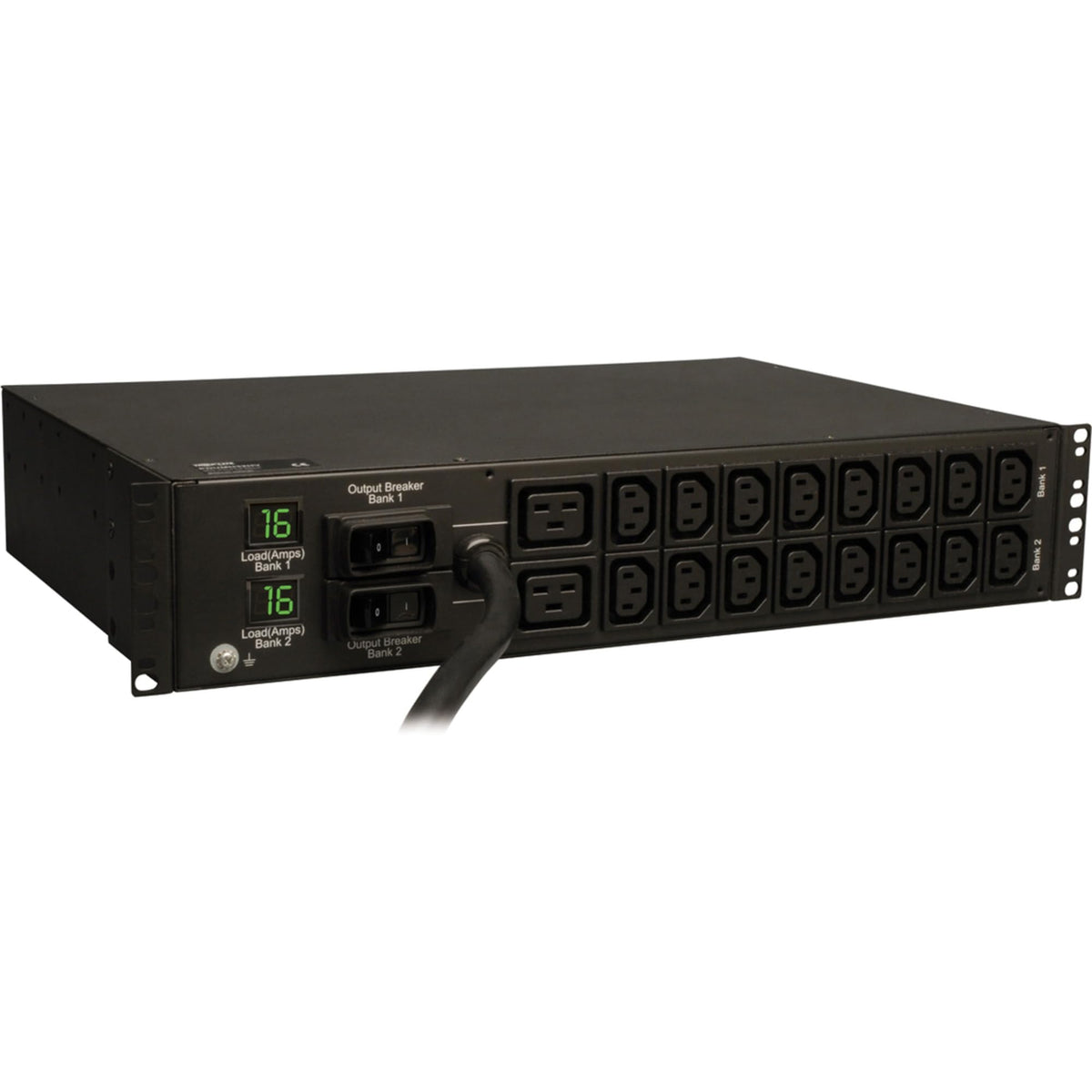 Pdumh32Hv Horizontal 2U Metered Rack Pdu Supports 32A Maximum Capacity At 230V. Includes 12 Ft / 3.6M Attached Line Cord With Blue Iec-309 32A Input Plug And 18 Output Receptacles (16 C13, 2 C19). Outlets Are Arranged In Two Separately Break Red 9 Outlet Load Banks. Set Of Two Visual Current Meters Tracks The Output Current Of Each Load Bank Separately. Supports 2U Rack Mount Installation In 19 Inch Racks. Included Cord Retention Brackets Keeps Vital Network Equipment Plugged In And Continuously Powered. Tripp Lite Metered Power Distribution Units Give It Managers The Ability To Monitor Network Power Consumption Levels To Prevent Mains, Generator, Ups Or Pdu Overloads And To Ensure Proper Load Balance In Complex Redundant Power Applications. Built-In, Easy To Read, Two-Character Led Display Offers Continuous Pdu Current Monitoring Data In One-Amp Increments. Switch-Free Unfiltered Electrical Pass-Through Reliably Distributes Ups Or Generator Power To Multiple Servers And Vital Networking Equipment In Rack Enclosures, Network Closets And More. Included Mounting Brackets Support Horizontal Installation In 19 Inch Racks Or Other Surfaces, Such As Under-Counter Or Wall Mount Configurations.