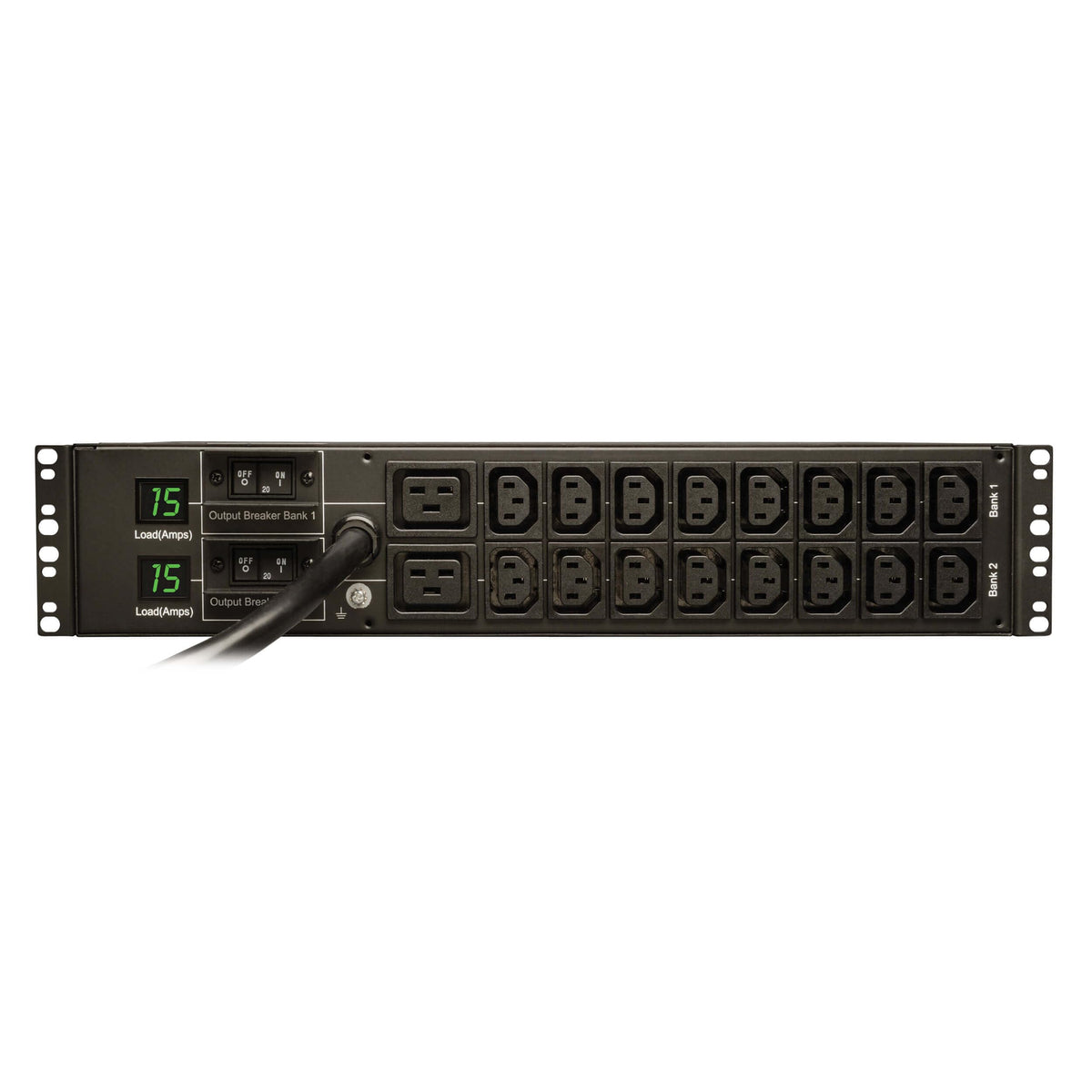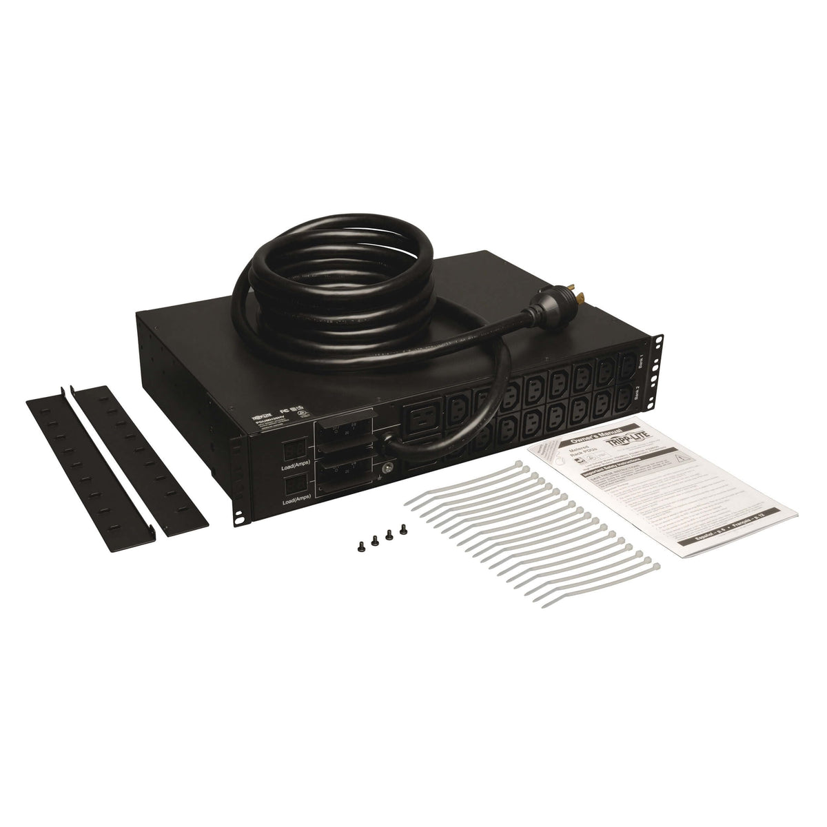 Pdumh30Hv Horizontal 2U Metered Rack Pdu Supports 30A Maximum Capacity At 208/240V (Agency Derated To 24A Continuous). Includes 12 Ft/3.6M Attached Line Cord With L6-30P Input Plug And 18 Output Receptacles (16 C13, 2 C19). Outlets Are Arranged In Two Separately Breakered 9 Outlet Load Banks. Set Of Two Visual Current Meters Tracks The Output Current Of Each Load Bank Separately. Supports 2U Rack Mount Installation In 19 Inch Racks. Included Cord Retention Brackets Keeps Vital Network Equipment Plugged In And Continuously Powered. Tripp Lite Metered Power Distribution Units Give It Managers The Ability To Monitor Network Power Consumption Levels To Prevent Mains, Generator, Ups Or Pdu Overloads And To Ensure Proper Load Balance In Complex Redundant Power Applications. Built-In, Easy To Read, Two-Character Led Display Offers Continuous Pdu Current Monitoring Data In One-Amp Increments. Switch-Free Unfiltered Electrical Pass-Through Reliably Distributes Ups Or Generator Power To Multiple Servers And Vital Networking Equipment In Rack Enclosures, Network Closets And More. Included Mounting Brackets Support Horizontal Installation In 19 Inch Racks Or Other Surfaces, Such As Under-Counter Or Wall Mount Configurations.