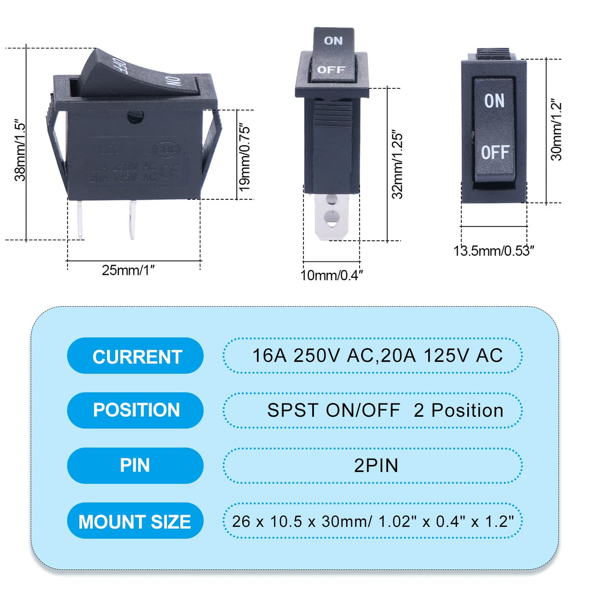 Product Name: Rocker Switch Package Content: 5Pcs Rocker Switchesproduct Features: This Switch Has The Font On Off, Which Makes It Easier To Identify The Switch State At That Time