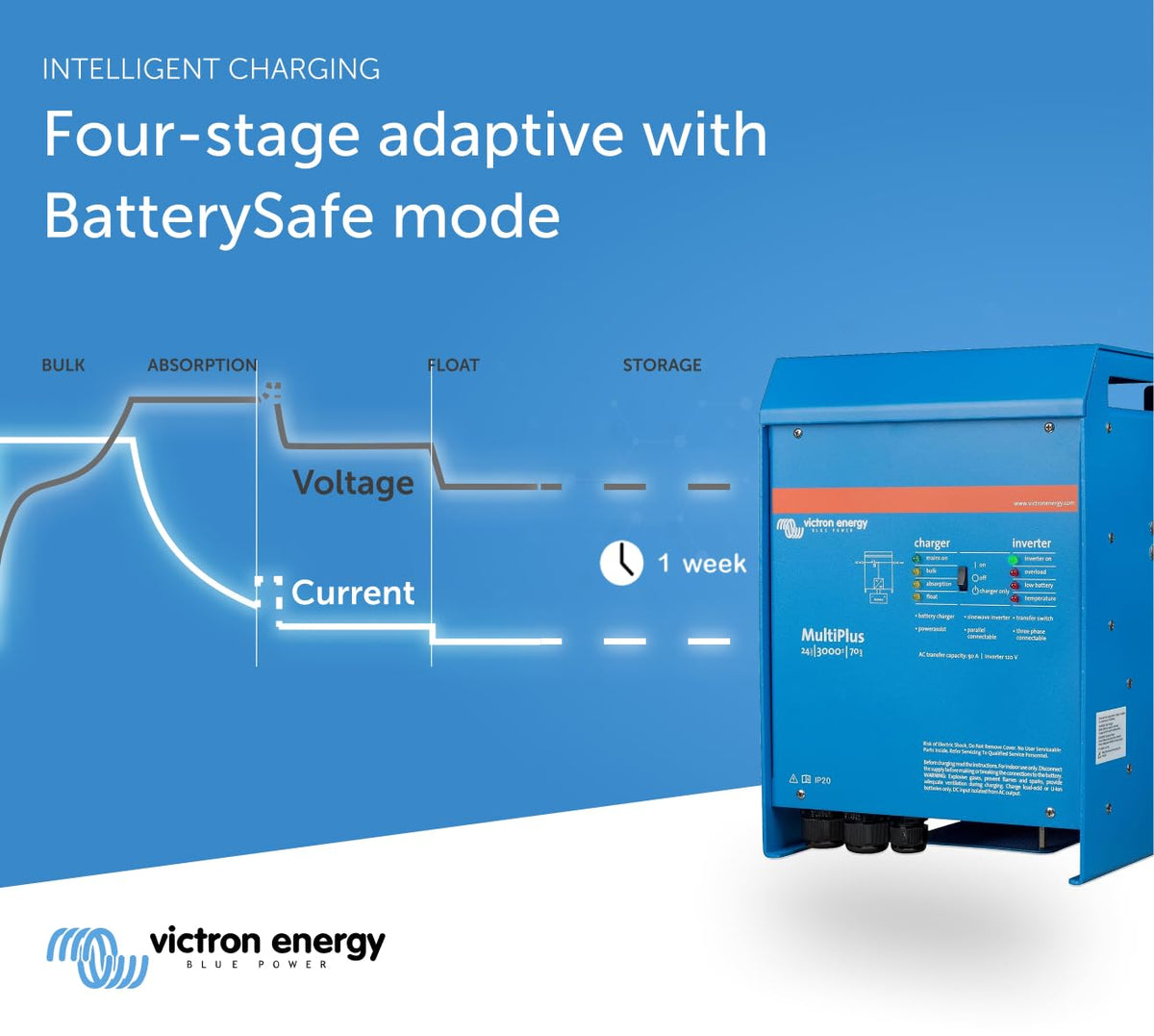 Victron Energy Multiplus Pure Sine Wave Inverter Charger For 70 Amp Battery, 3000Va 24-Volt