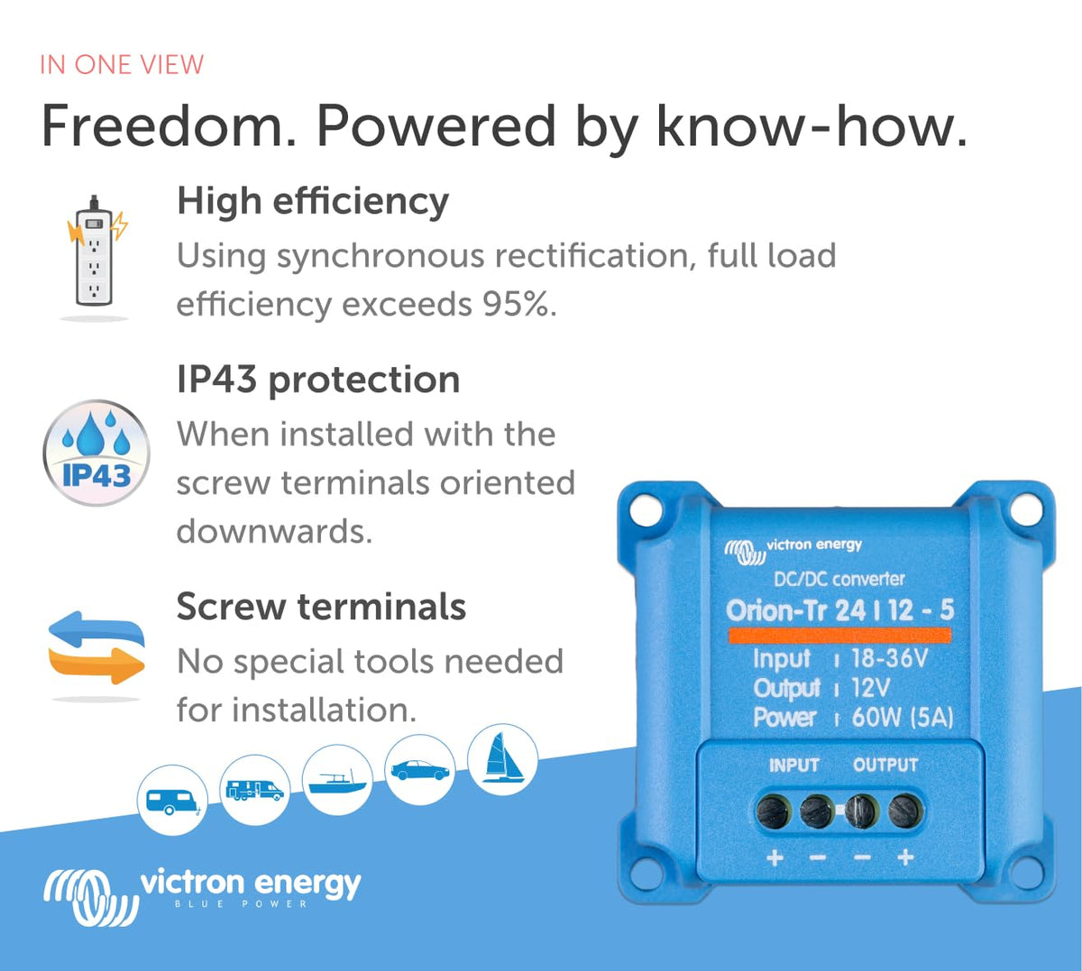 Victron Energy Orion Tr Dc To Dc Converter 24/12 Volt 5 Amp 60 Watt Ip43 Protected For Dual Battery Systems Non Isolated
