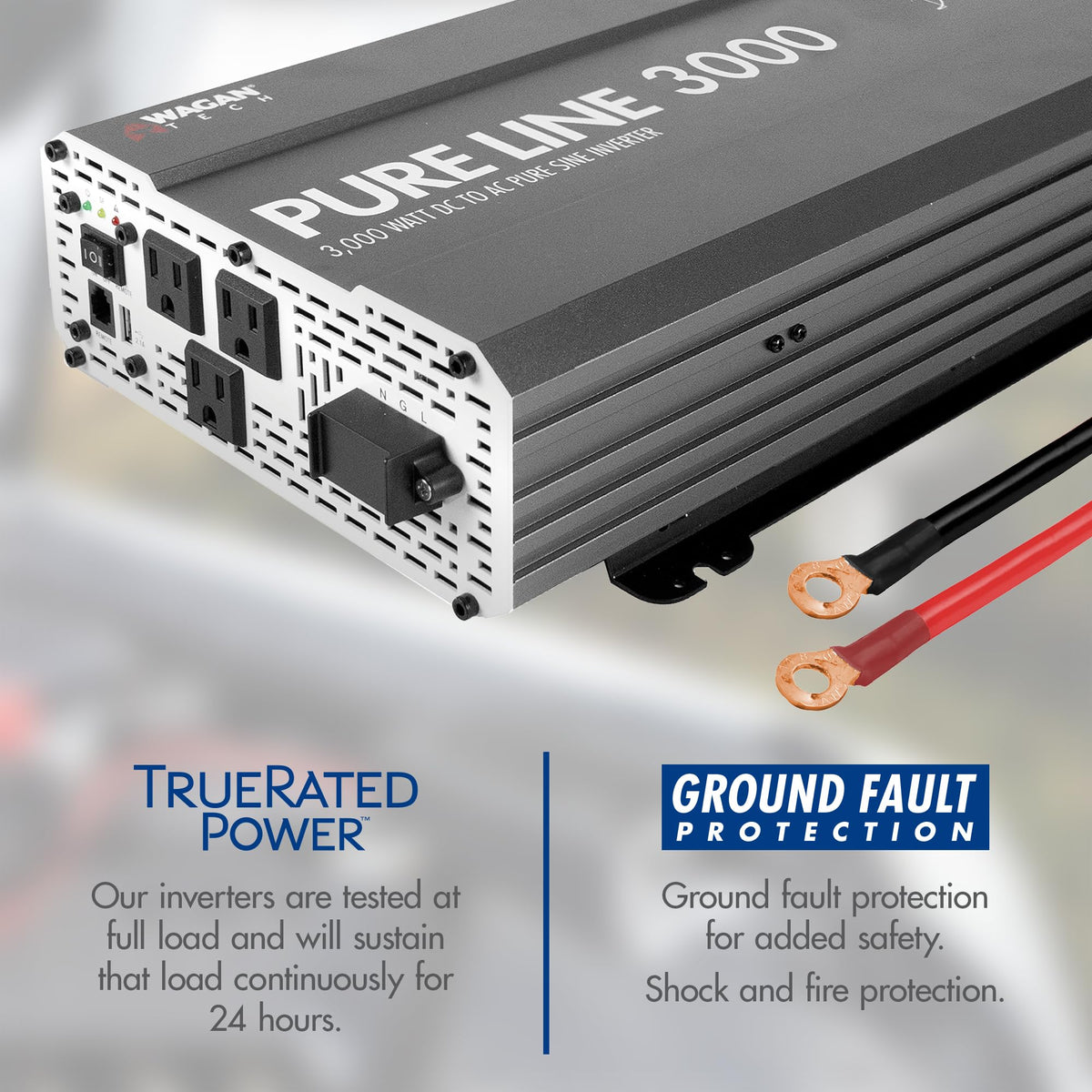 Wagan El3810 Pure Line 3000 Watt Power Inverter 6000 Watt Peak Surge Power Dc 12V To 110V Ac Car Inverter Etl Certified