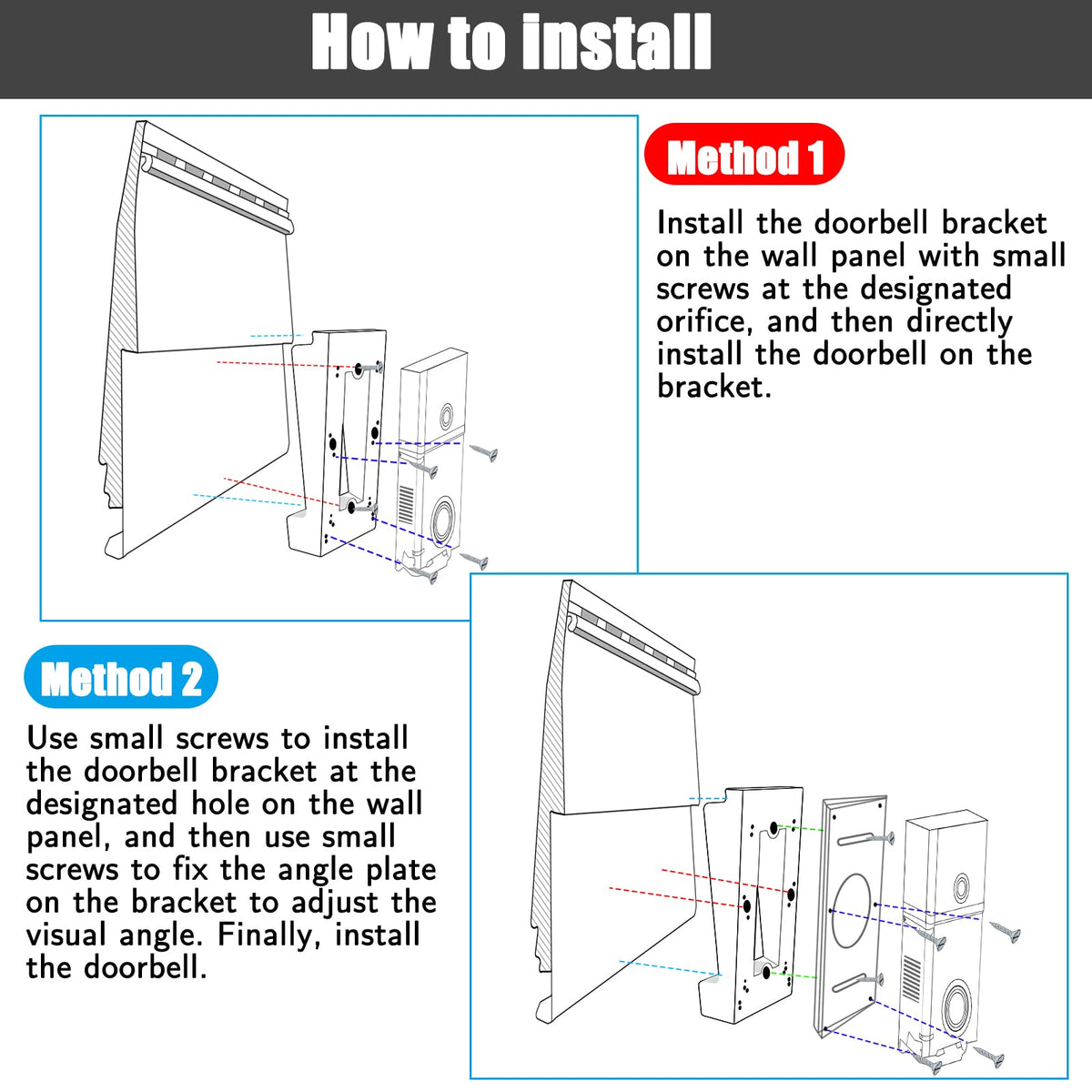 Q: How easy is the installation process for this mount?A: The installation process is straightforward and hassle-free. The mount comes with screws, making it easy to attach securely to your siding, allowing you to adjust the angle of your doorbell without any complicated setup.