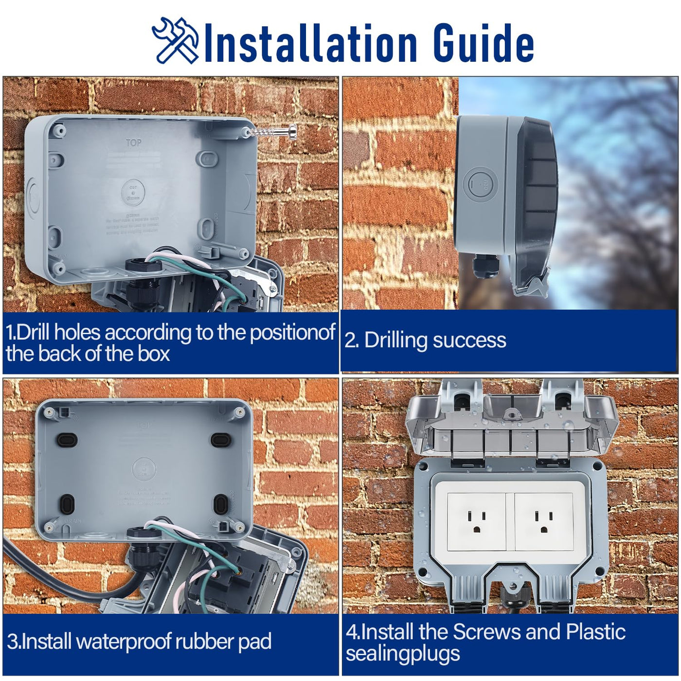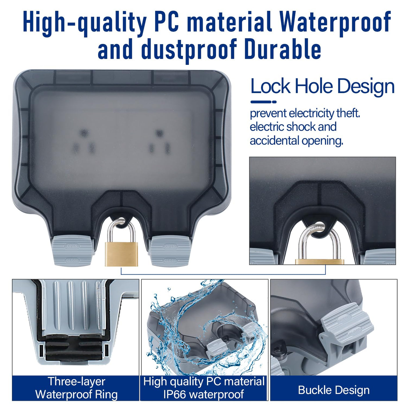 Zuyiyi Outdoor Power Outlet With 32.8Ft Extension Cord, Double Plug Outlet Extender, Weatherproof Waterproof Ip66 Outdoor Electr