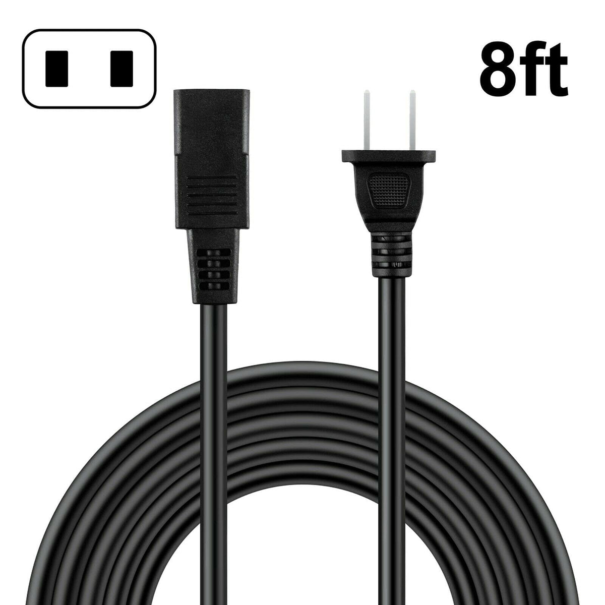 8Ft 2-Prong Square Ac Power Cord Cable Lead For Roland Rhodes Synthesizer Keyboard Vk-1000 Mk-80