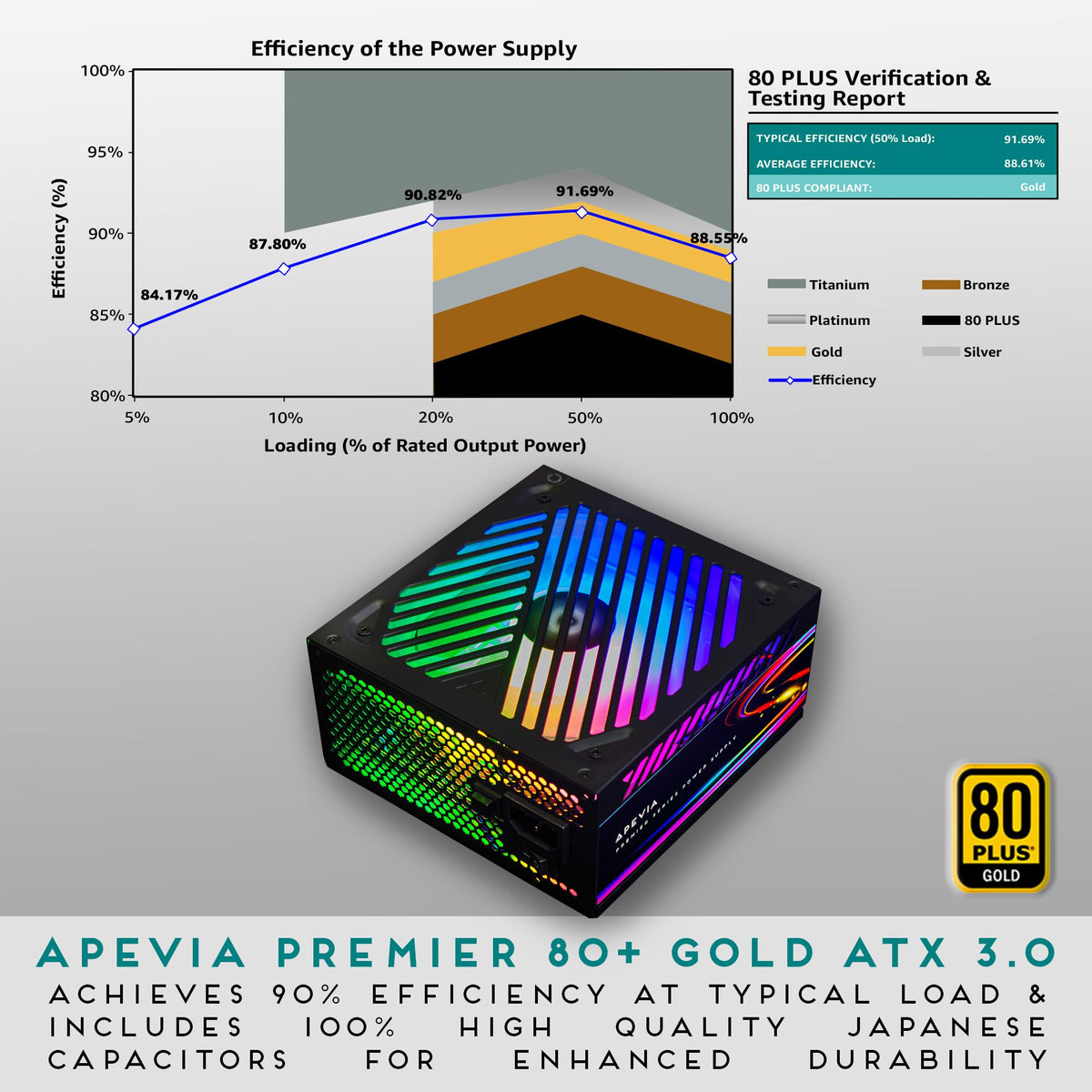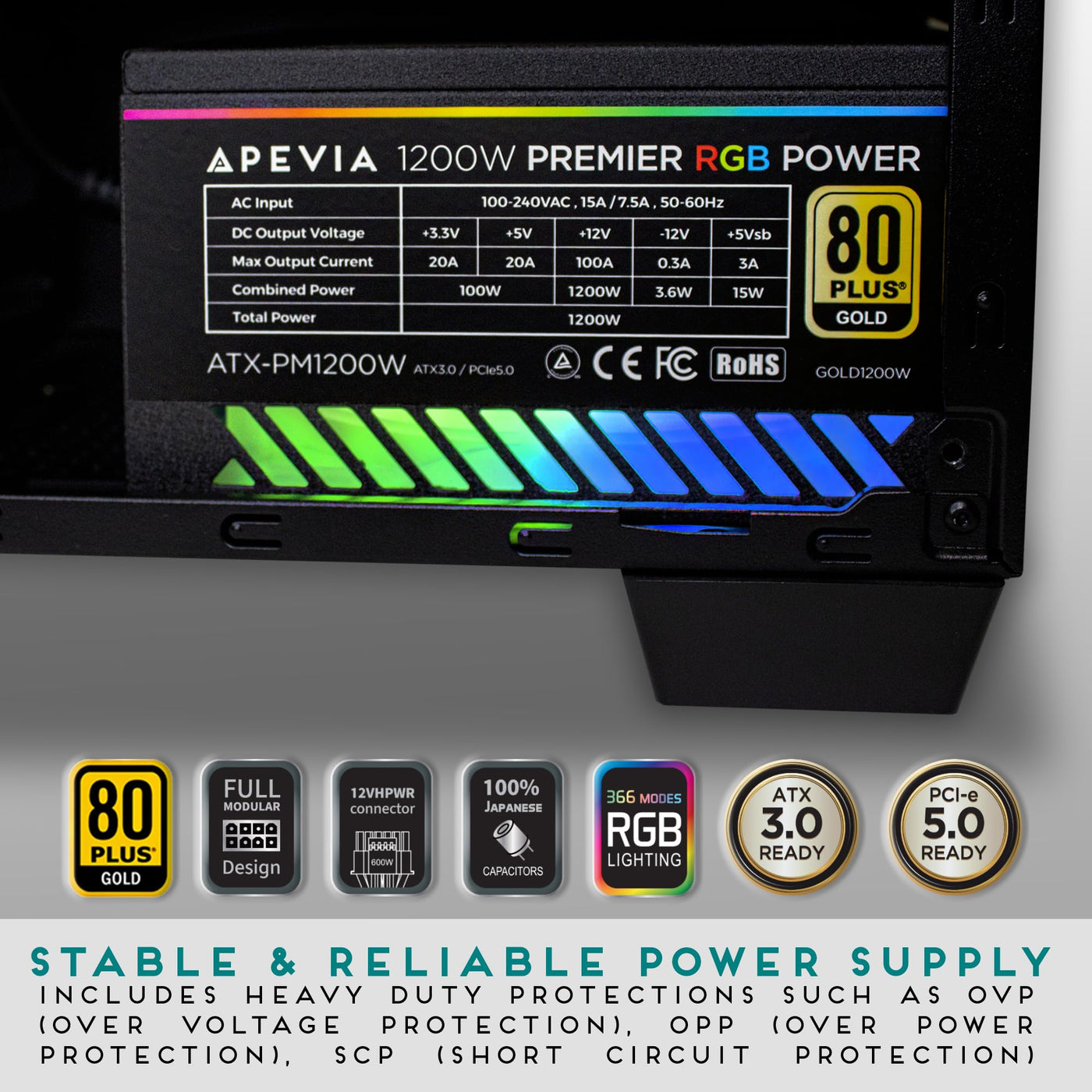 Apevia Atx Pm1200W Premier 1200W Fully Modular 80+ Gold Certified, Pcie 5.0 & Atx 3.0 Ready Active Pfc Atx Rgb Gaming Power Supp