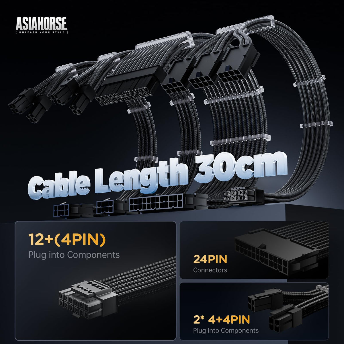Asiahorse Is Committed To Providing High Quality, Rugged Extension Cords That Provide A Professional Look To The Perfect Build. Our Psu Cables Extension Feature A Unique Braid That Is Soft And Easy To Mold Without Taking Up Too Much Space. This 12Vhpwr Extension Cable Kit Provides 4 Pieces To Cover Your Main System Cables And Uses Universal Atx Connectors That Are Compatible With Any Standard Atx Power Supply Unit Cables, Allowing You To Manage Cables With Ease!