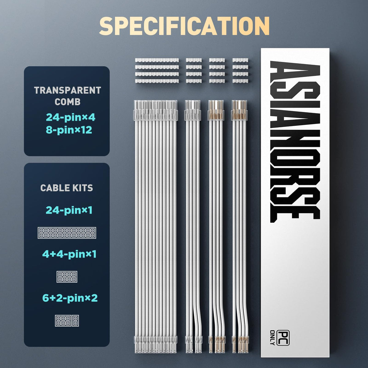 Asiahorse 16Awg Psu Cable Extension Kit, Sleeved Custom Mod Gpu Pc Audio Video Power Supply Soft Braided Cables With Comb Kit, 2