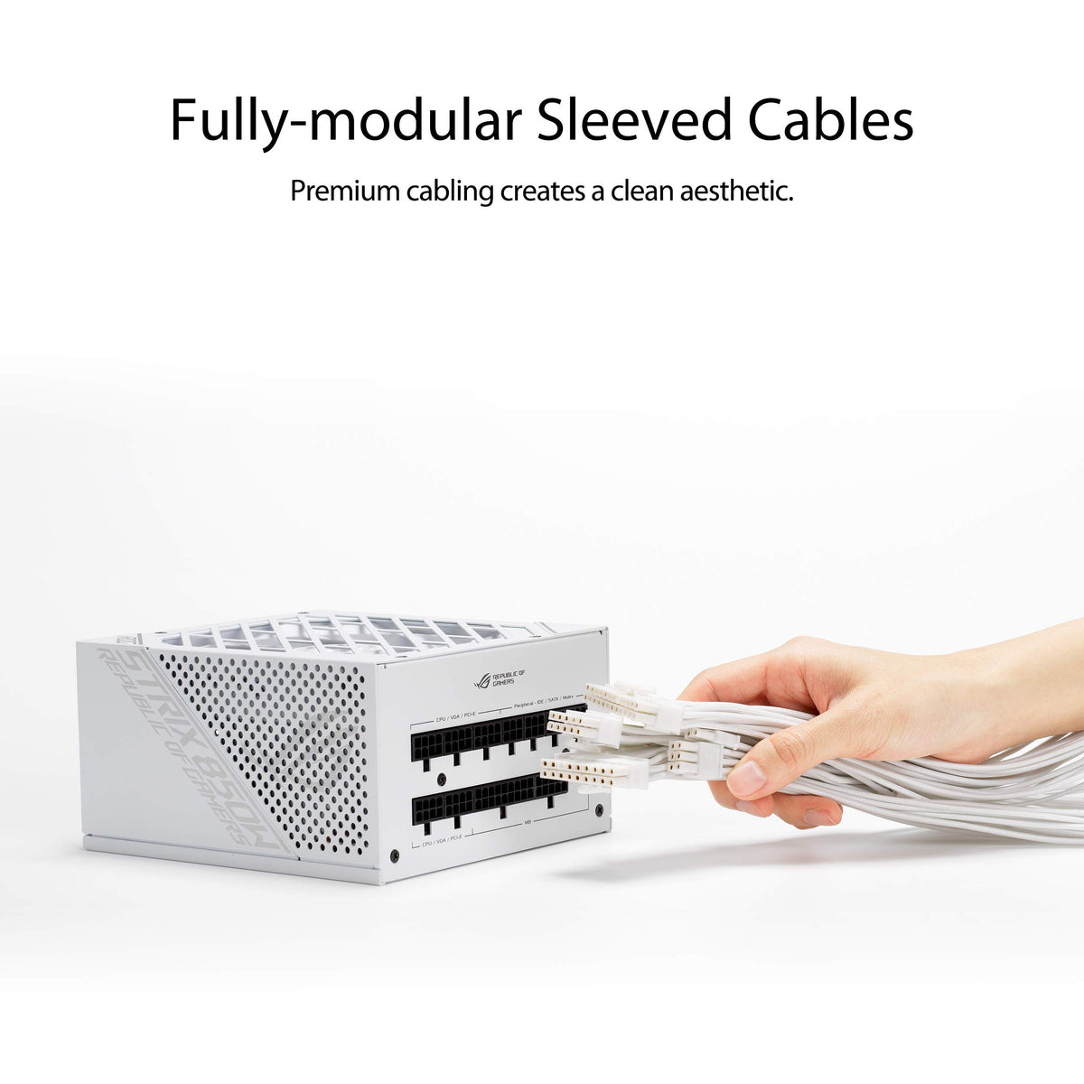 Q: How does the fully modular cable design benefit my PC setup?A: The fully modular cable design of the ASUS ROG Strix 850W PSU allows you to connect only the cables you need, keeping your rig neat and tidy while improving airflow inside your case.