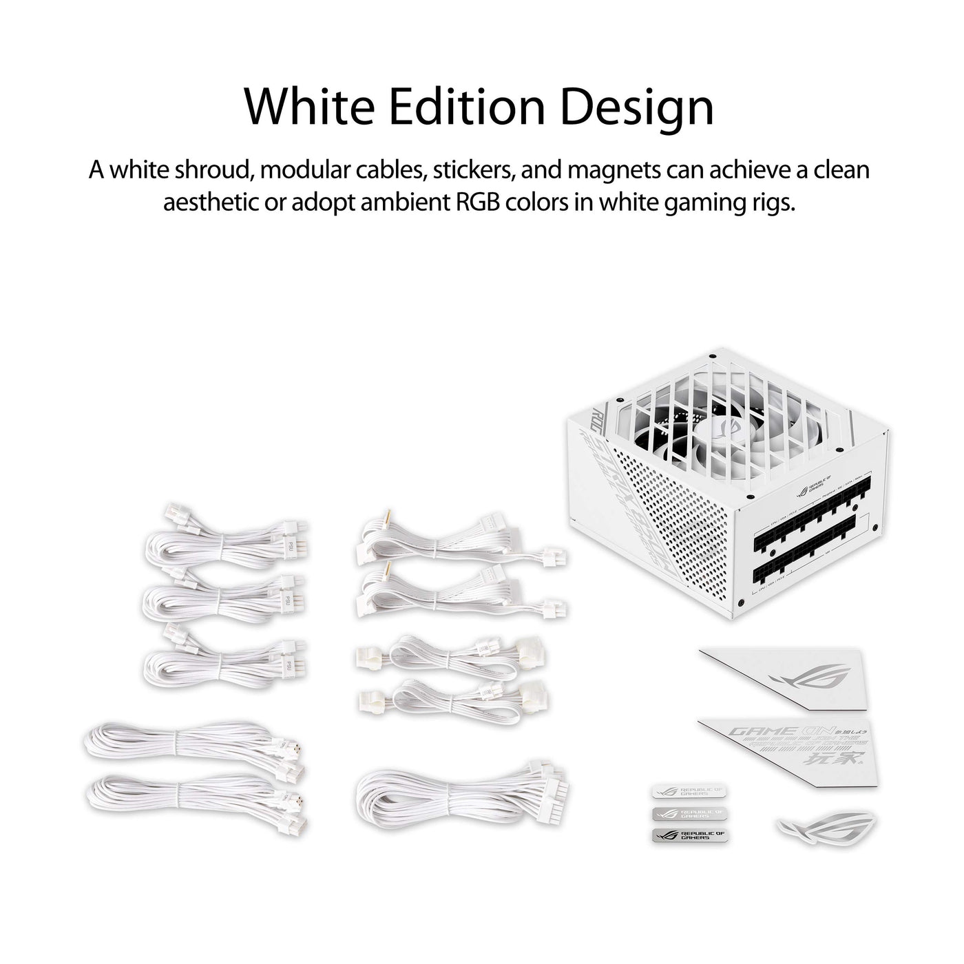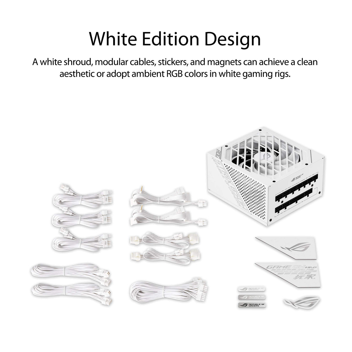 Asus Rog Strix 850W White Edition Psu, Power Supply (Rog Heatsinks, Axial Tech Fan Design, Dual Ball Fan Bearings, 0Db Technolog