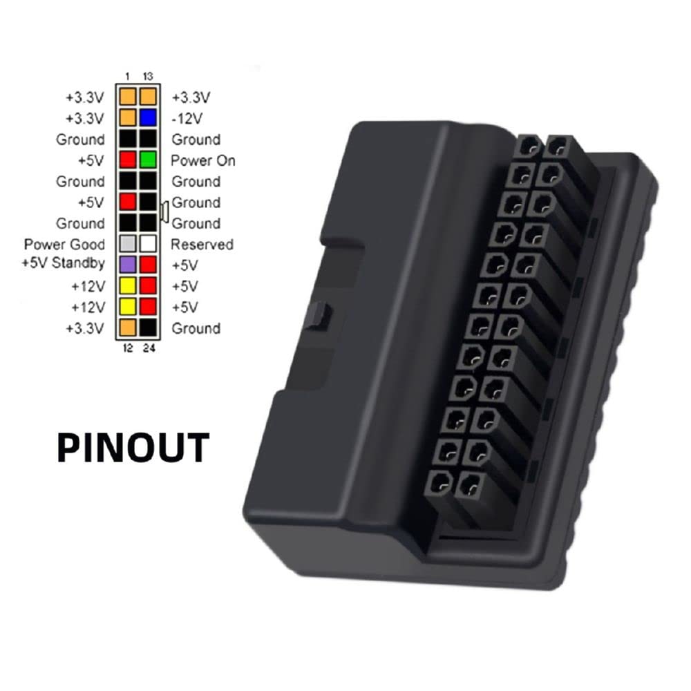 Overmold Atx 24Pin Female To 24Pin Male 90 Degree Power Adapter Mainboard Motherboard For Desktops Pc Supply Pvc Overmold For The Adapter. The Angled Atx Power Completely Solves The Problem Of Excessively Lardge Power Cords On The Motherboard And Makes The Wiring More Beautiful. The Adapter Is Designed For Changing Atx 24Pin Cable Installation Direction You Can Install The 24Pin Power Cable From Vertical To Horizontal Direction With This Adapter Which Will Solve The Psu Installation For The Limited Height Chassis