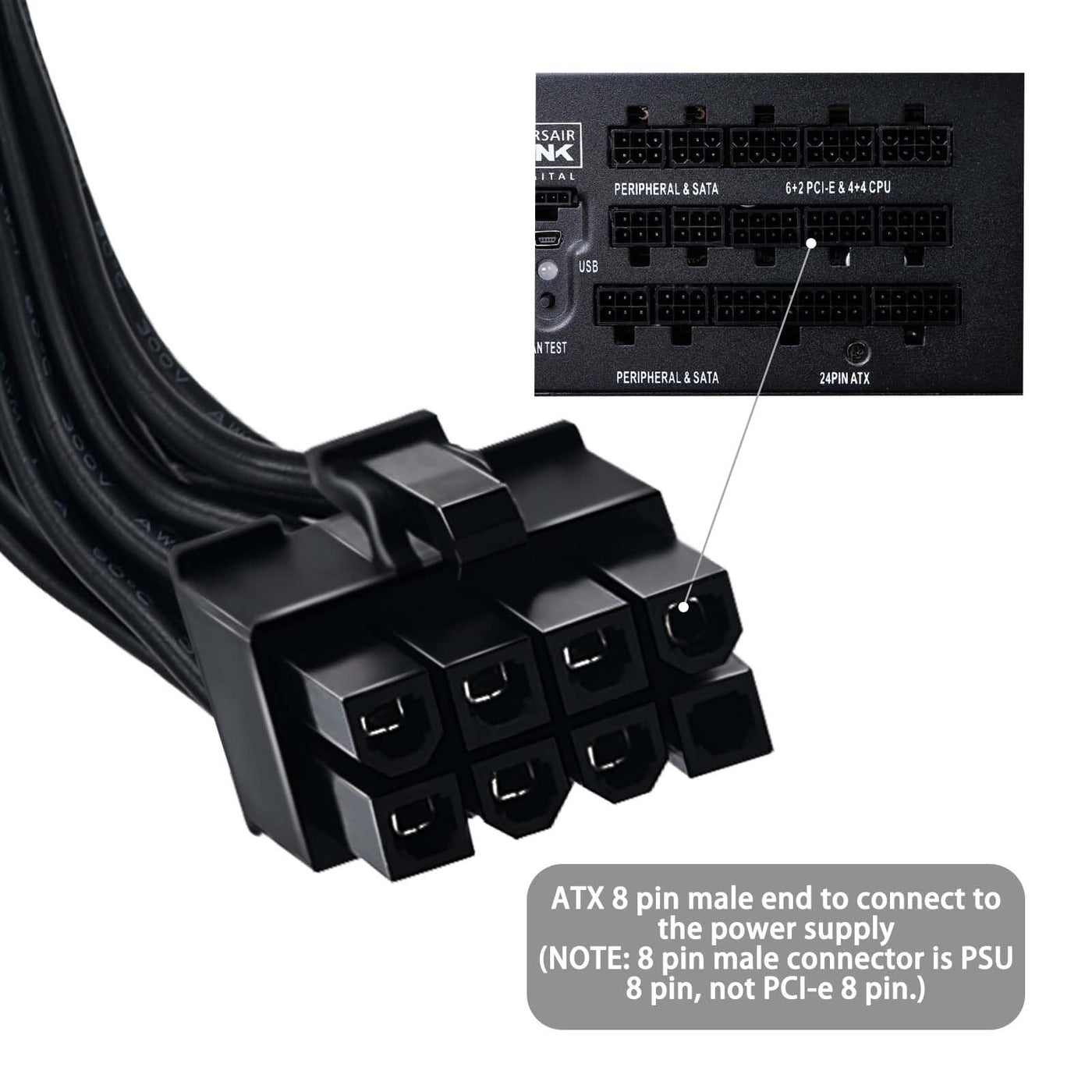 Comeap Pcie Cable For Corsair, Atx Cpu 8 Pin Male To Dual Pcie 8 Pin (6+2) Male Power Cable For Corsair Thermaltake Aresgame Pow