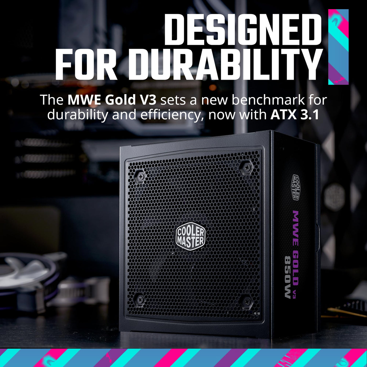 The Mwe Gold V3 Sets A New Standard Of Durability And Efficiency For Cooler Master Power Supplies. This 80 Plus Gold Certified Unit Can Achieve Titanium-Level Efficiency At Light Loads In A 115V Test. Featuring An Apfc Half-Bridge Llc And Dc-To-Dc Design, The Mwe Gold V3 Ensures Top-Tier Performance With 80 Plus Gold Efficiency. Smart Thermal Control And Zero-Rpm Mode Reduce Noise And Improve Heat Dissipation. The Atx 3.1 12V-2X6 Native Cable With A Durable 90-Degree Connector.