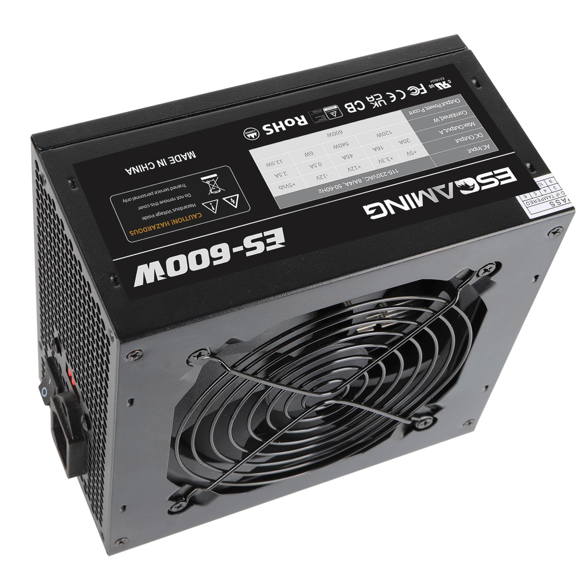 Q: What is the wattage of the ESGAMING ATX Power Supply?A: The ESGAMING ATX Power Supply has a wattage of 600W, making it suitable for powering various gaming setups and components.