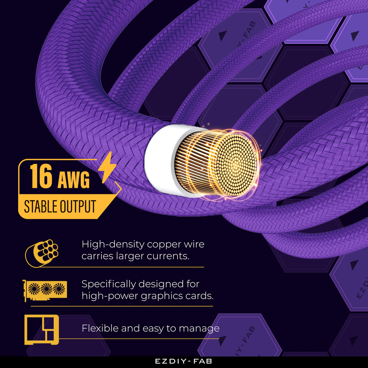 Ezdiy-Fab Gpu Power Sleeved Cable Extension, 16Pin(12+4) 12Vhpwr Pcie 5.0 Connector Male To Female For Rtx3090Ti/4090/4080/4080 Super/4070Ti Super/4070 Super/4070Ti/4070, With Cable Combs-16Awg/Purple Green