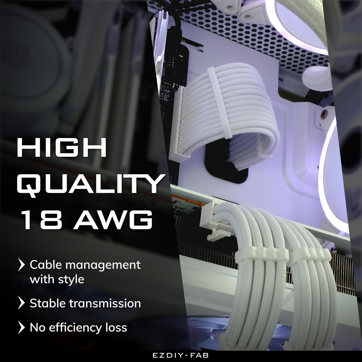 Q: What materials are used in the construction of these cables?A: The cables are made from soft nylon braiding and utilize 18AWG wire, ensuring durability and meeting ATX3.0/3.1 specification standards.
