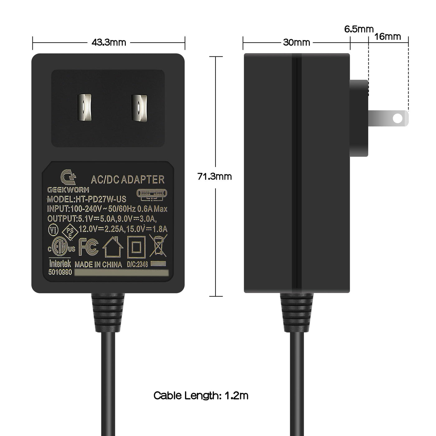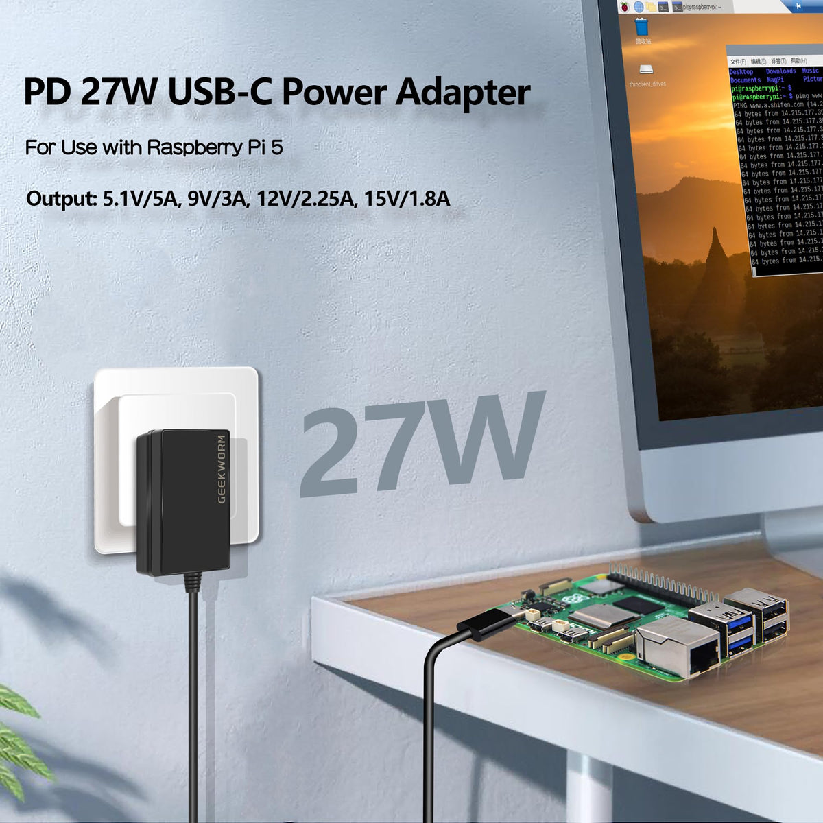 Geekworm Pd 27W 5.1V 5A Usb C Power Supply For Raspberry Pi 5