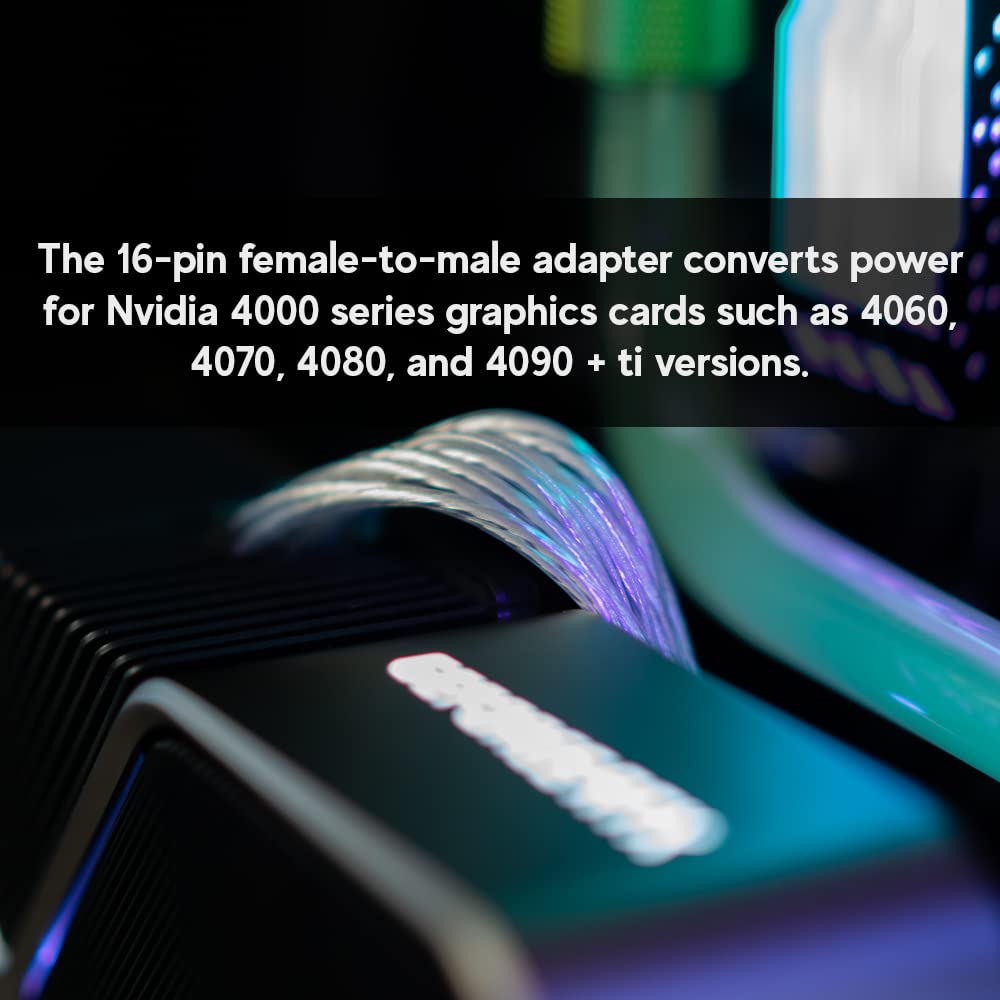 Specs: These High-Quality, Rugged, And Routable Modular Pcie 5.0 16Awg Silver-Coated Psu Cable Extensions For Nvidia 4000Series Gpus Provide A Refined Professional Look For The Perfect Build. The 16-Pin Female-To-Male Adapter Converts Power For Nvidia4000 Series Graphics Cards Such As 4060, 4070, 4080, And 4090 + Ti Versions.Compatibility: Nvidia 4060, 4070, 4080, And 4090 (+ Ti) Graphics Cards. It Is Backward Compatible With Nvidia Rtx 3000 Foundersedition Fe Series Graphics Cards. It Is Not Compatible With Amd Gpus.Materials: 16Awg Ul 1571 Tinned Copper Wires With Silver Shielding And Premium Sleeves. The Extra Thick Wires Provide Theneeded Voltage For Nvidia Rtx 4000 Series Gpus. The Silver-Coated Copper On The Wires Provide Extreme High-Heat Resistance Andensures Optimum Power Handling.Warranty: Linkup Offers A 365-Day Limited Manufacturer Warranty. Our Customer Care Team Will Respond To All Inquiries Within48 Hours.User Information/Notes: This Is An Extension Cable, Please Use It With The Original Power Supply Cable, Do Not Plug Into Psu Directly.