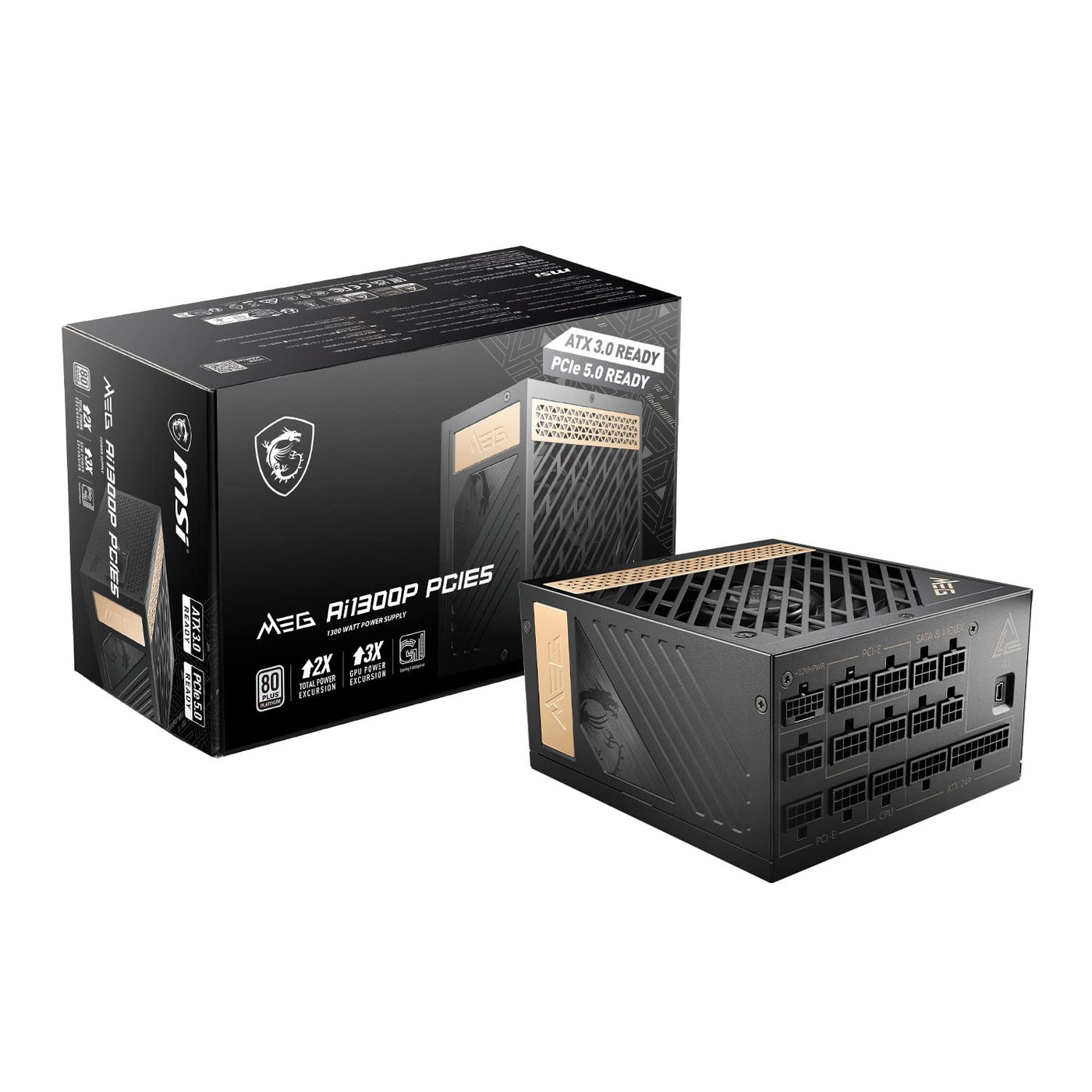Meg Ai1300P Pcie 5 & Atx 30 Gaming Power Supply Full Modular 80 Plus Platinum Certified 1300W 100% Japanese 105Ac Capacito