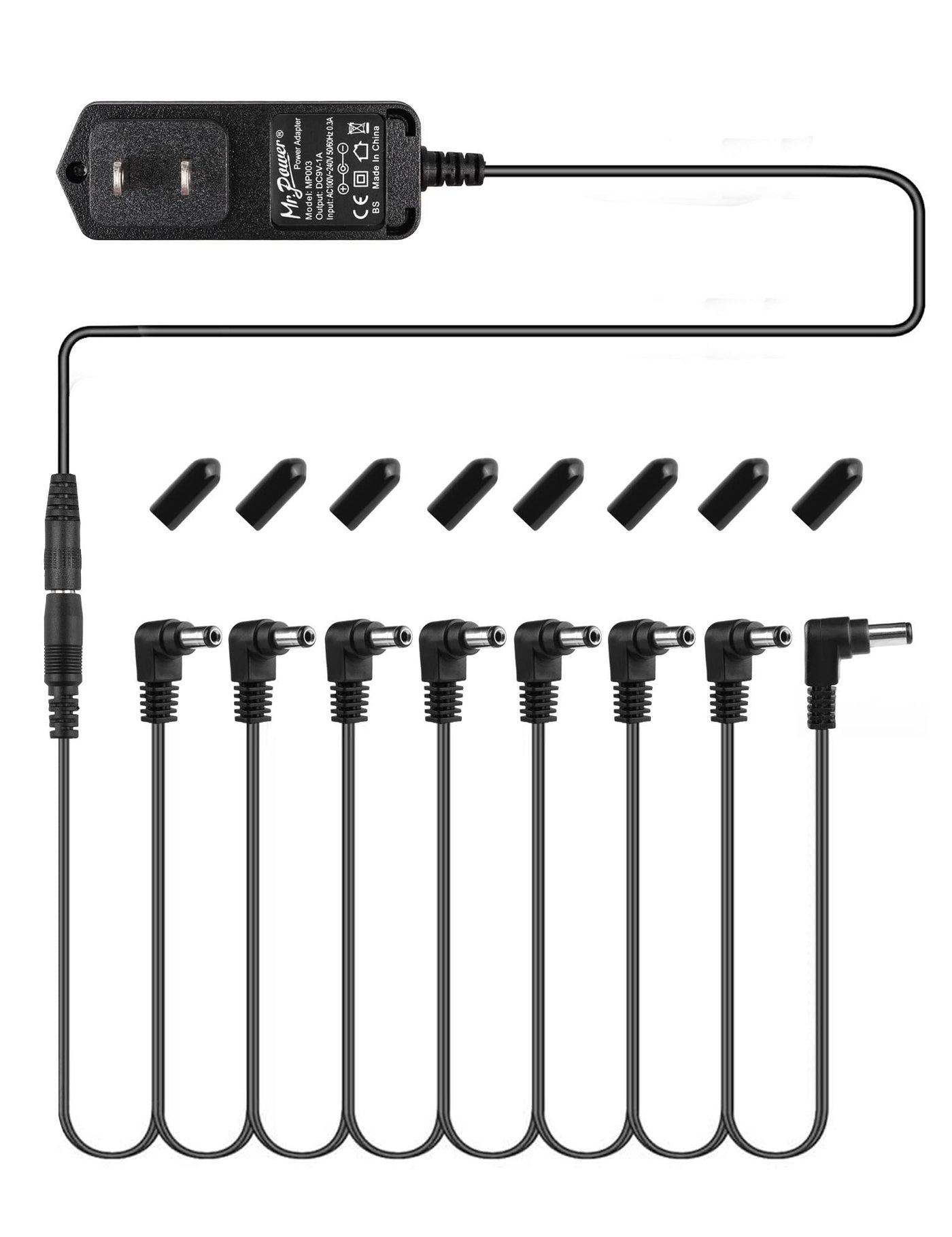 Mr.Power Guitar Effects Power Supply Adapter 9V Dc 1A (1000Ma) With Daisy Chain Cord Cable Free Insulated Cap (9V Adapter + 8 Way Cable)