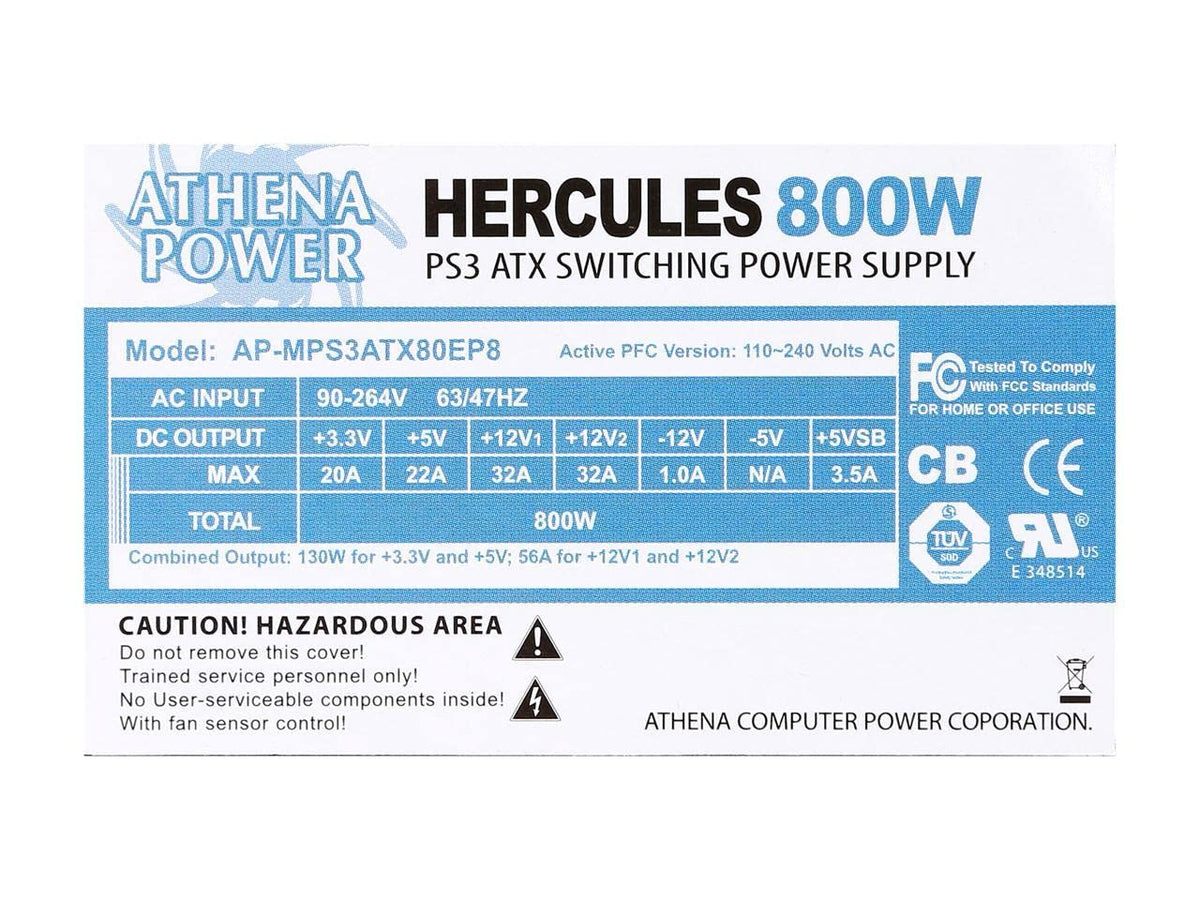 Athena Power Ap-Mps3Atx80Ep8 800W Microps3 (118Mm Length)/Ps2 Single Eps12V/Atx12V Ipc Server Power Supply 80Plus Bronze Activepfc