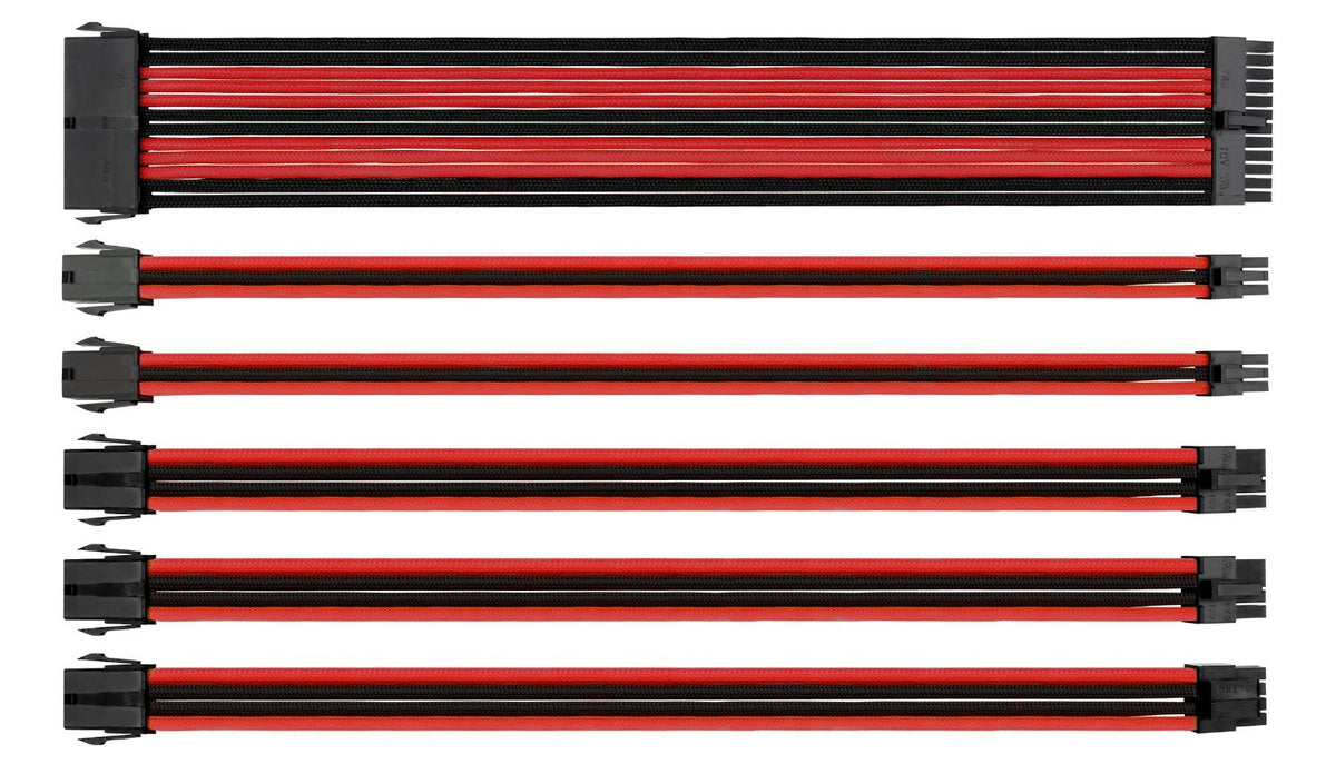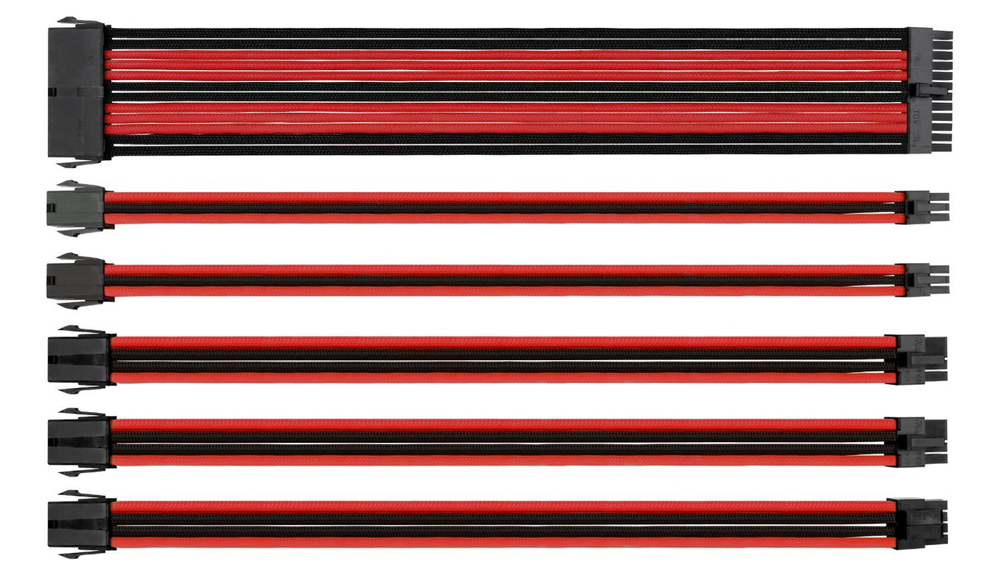 Title:Thermaltake Pc Modding Sleeve Extension Power Supply Cable Kit (Atx/Eps/8-Pin Pci-E/6-Pin Pci-E With Combs)Key Features: Compatible With Atx Form Factor Power Supplies (Extensions Connect Into Factory Psu Cables) Extend Your Power: Each Extension Cables Comes In 300Mm In Length With Black Connectors On Both Ends Available In (4) Custom Color Options: Red/Black, Blue/Black, Green/Black, Orange/Black Extension Kit Includes: (1) 24-Pin(Atx), (1)4+4-Pin (Eps), (2) Pcie 8-Pin, (2) Pcie 6-Pin With (4X) Cable Combs For Each Cable Triple-Layered Protection: Protect Your Power Delivery With Properly Insulated Cable Sleeving, Insulating And Certified 16 Awg Cable Wire Heat-Shrink-Less Design: Each Cable Is Proper Sleeved And Secured Without The Need For Heatshrink Material Product Description:Customize Your System Build With The Thermaltake Ttmod Sleeved Extension Cable Kit. With Three-Layered Cable Design And Inner Certified 16 Awg Wire, The Ttmod Sleeve Cable Extension Kit Offers Users More Flexibility For Easy Installation As Well As A Clean And Professional Look. The New Individually Sleeved Cables Are Heat-Shrink Free To Ensure High-Quality Cable Assembly And Support For High Currents In Order To Achieve Superior Performance And Stability. There Are Four Color Combos To Choose From - Blue/Black, Red/Black, Green/Black, And Orange/Black Including Cables For (1) 24-Pin (Atx), (1) 4+4-Pin (Eps), (2) 8-Pin Pci-E And (2)6-Pin Pci-E With All Black Cable Combs For A Streamlined Presentation.Package Contents(1) 24-Pin Atx Cable(1) 4+4-Pin Eps Cable(2) 8-Pin Pcie Cable(2) 6-Pin Pcie Cable(4) 24-Pin Black Cable Comb(12) 8-Pin Black Cable Comb(8) 6-Pin Black Cable Combsupportplease Visit Our Website Or Search ''Thermaltake Support'' For Any Assistance.