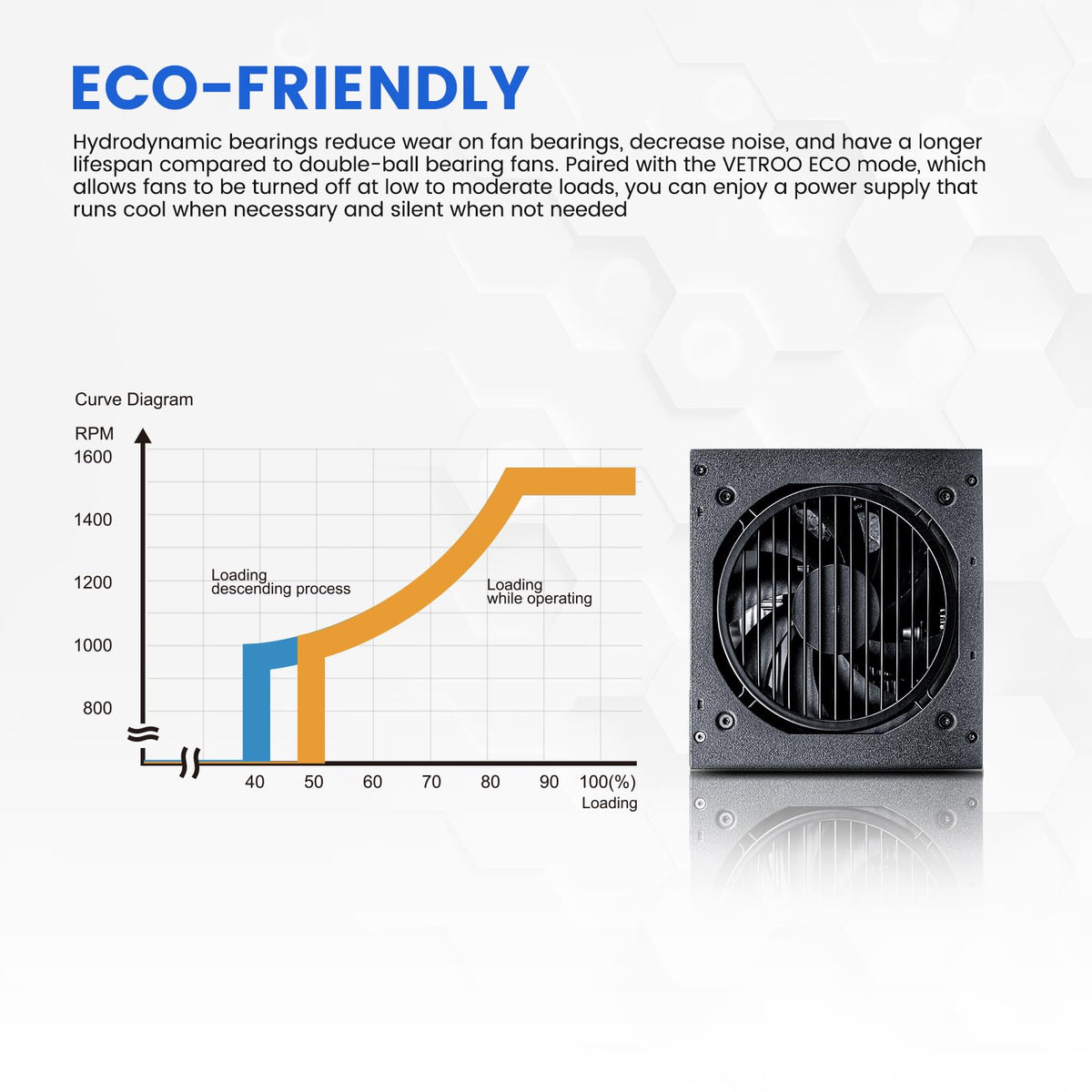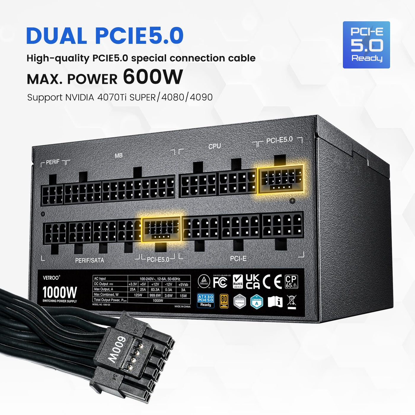 Vetroo 1000W Black Power Supply Atx 3.0 Ready Dual Pcie 5.0, 80 Plus Gold Full Modular, Compact Size, Japanese 105C Capacitors,