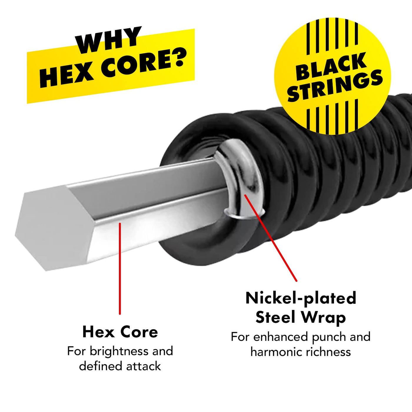 Product Descriptionblack Beauties Electric Guitar Strings Combine Premium Tone And Playing Feel With A Sleek Black-Colored Coating That Looks Amazing While Maximizing String Life Crafted With A Nickel-Plated Steel Wrap Wire Over A Hex Core, Black Beauties Deliver Bright Modern Tone With Exceptional Clarity And Articulation In Addition To Great Looks, The Jet Black K3 Coating On The Wrap Wire Resists Corrosion For Longer String Life And Unlike Some Coated Strings, Black Beautiesa K3 Coating Is Ultra-Hard To Maintain Brightness, Note Attack, And Playing Feel Black Beauties Are Compression-Wound For Enhanced Resonance, As Well As A Smooth Feel Under Your Fingers That Also Produces Less Wear On Your Frets And Like All Dr Strings, Black Beauties Are Proudly Made In Westwood, New Jersey Using The Finest American Made Materials Whether You Want Amazing Looks, Bold Tone, Or Longer String Life, Youall Have It All With Black Beauties Electric Guitar Stringsfrom The Manufacturerblack Beautiesa Black Colored Electric Guitar Strings Arenat Just About The Sleek And Sophisticated Look They Feature A Hexagonal Core Wire And A Nickel-Plated Steel Wrap Wire To Maintain Brightness And Feel All Strings In The Set Are Coated With A Je