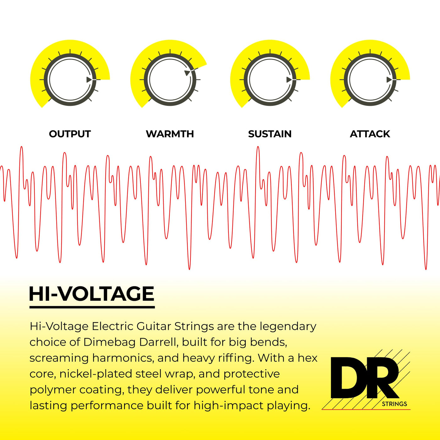 Product Descriptionhi-Voltage Electric Guitar Strings Are The Signature Strings Played By The Late Metal Icon Dimebag Darrell. They Feature A Hexagonal Core Wire And Nickel-Plated Steel Wrap Wire Treated With Stringlife, A Molecular Bonding Liquid Polymer That Protects Them From Corrosive Elements. As Darrell Used To Say, Theyre Great For Everything, From Big Ol String Bends, To Huge Whammy Bar Dives, Perfect For Blood Curdling Harmonic Screams And Just Straight Out Heavy Chunky Riffinfrom The Manufacturerhi-Voltage Electric Guitar Strings Are The Signature Strings Played By The Late Metal Icon Dimebag Darrell. They Feature A Hexagonal Core Wire And Nickel-Plated Steel Wrap Wire Treated With Stringlife, A Molecular Bonding Liquid Polymer That Protects T