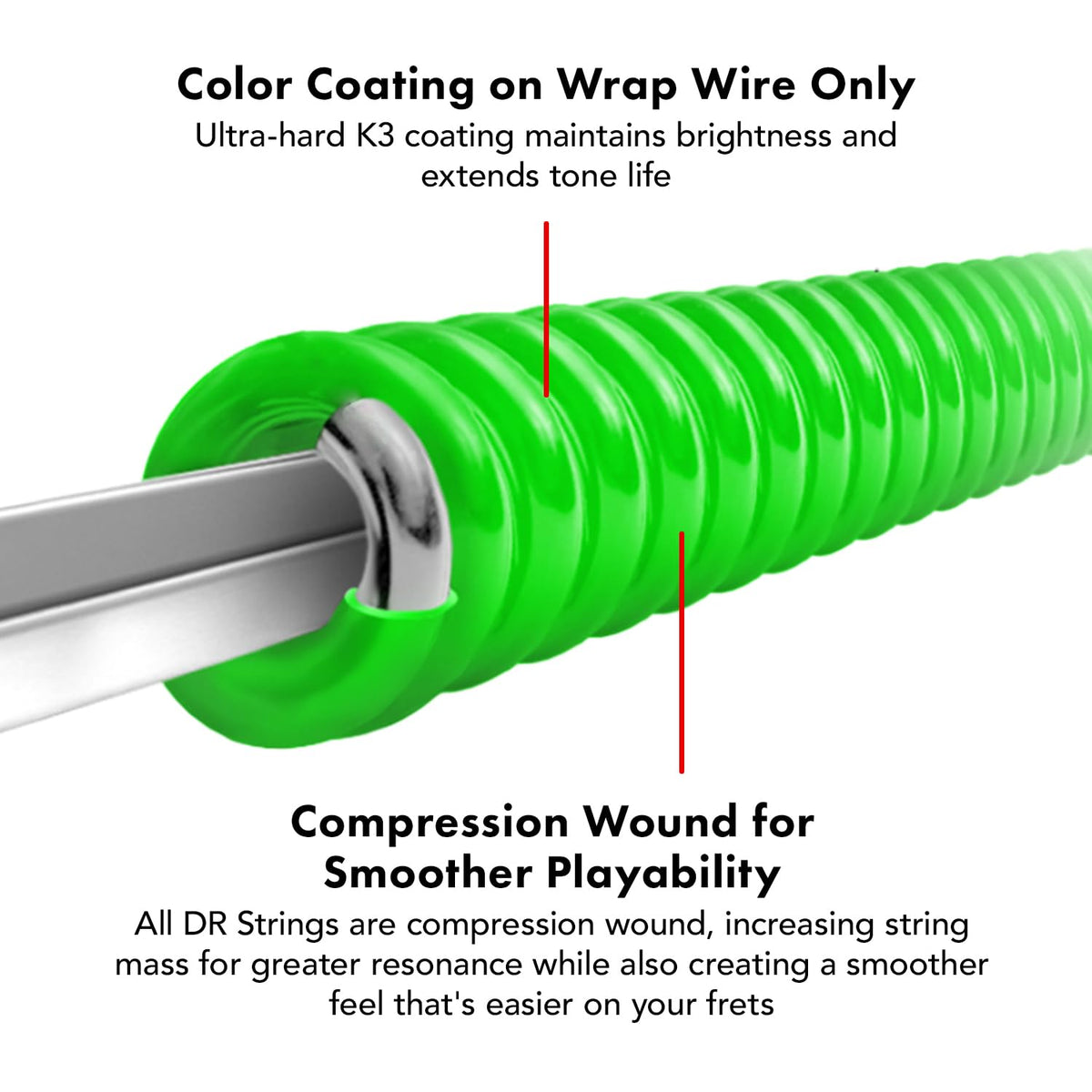 Product Descriptiondr Strings Hi-Def Neon Electric Guitar Strings Combine Outstanding Tone With A Color Coating That Looks Amazing While Extending String Life The Proprietary K3 Coating Is Applied Directly To The Nickel-Plated Wrap Wire To Maintain Brightness And Touch Sensitivity, And Doesnat Flake Or Peel Away Over Time Like Inferior Coatings Do A Hex Core Maximizes String Brightness And Output, Helping Hi-Def Neon Strings Deliver More Volume, Clarity, And Articulation Than Standard Uncoated Strings And Because The K3 Coating Protects Against Corrosion And Perspiration, Hi-Def Neon Strings Offer The Increased Tone Life That Coated Strings Are Known For Like All Dr Strings, Hi-Def Neon Strings Are Made In The Usa Using The Finest Materials To Bring You Better-Sounding, Longer-Lasting Strings Whether You Want Amazing Looks, Bold Tone, Or Extended String Life, Youall Have It All With Hi-Def Neon Electric Guitar Stringsfrom The Manufacturerhi-Def Neona Color Coated Electric Guitar Strings Are Available In A Wide Variety Of Luminescent Color Options Designed To Give Your Stage Presence A Little Extra Pop, Especially Under Uv Black Lighting They Feature A Hexagonal Core Wire And A Silver-Pl