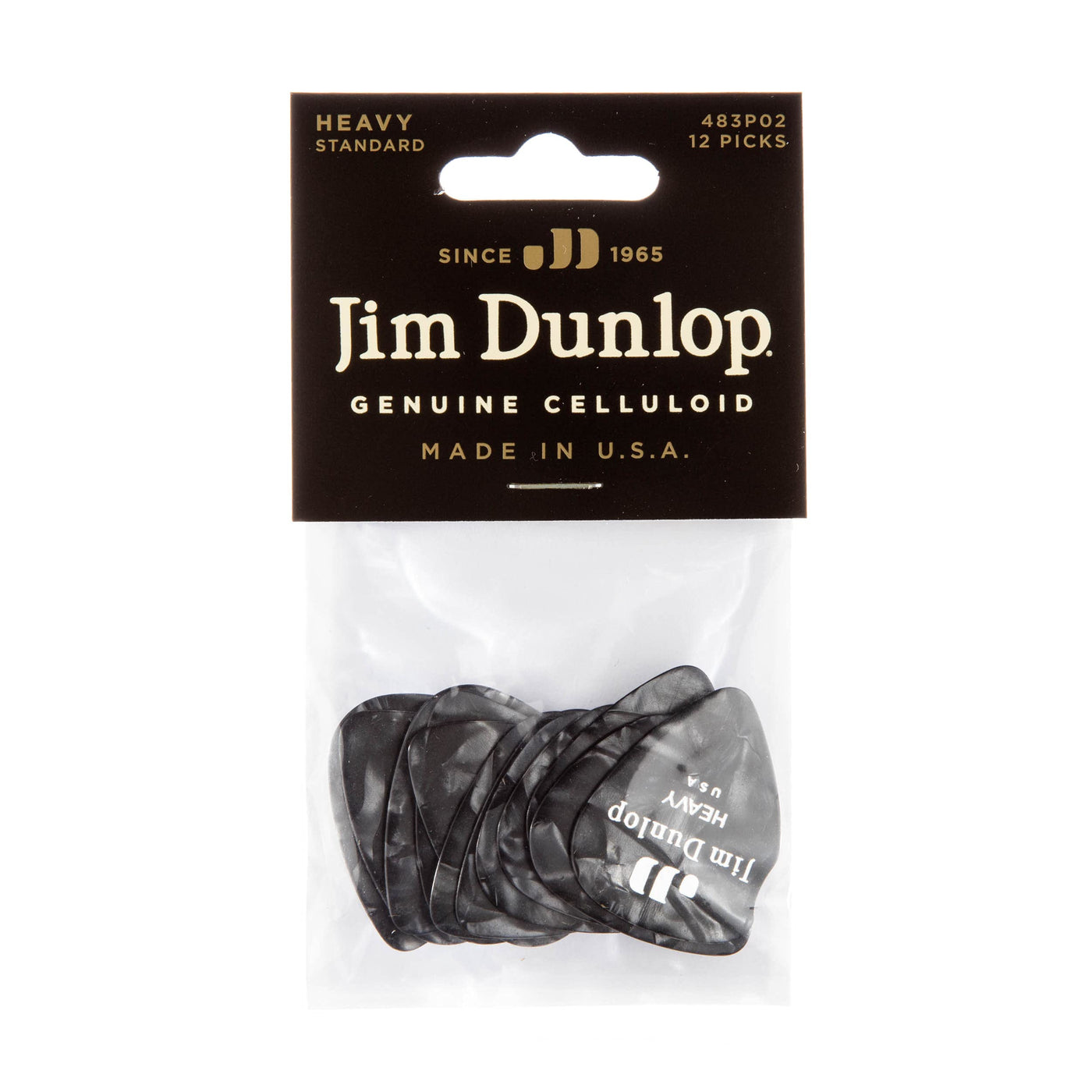 Dunlop 483P02Hv Genuine Celluloid, Black Pearloid, Heavy, 12/Player'S Pack