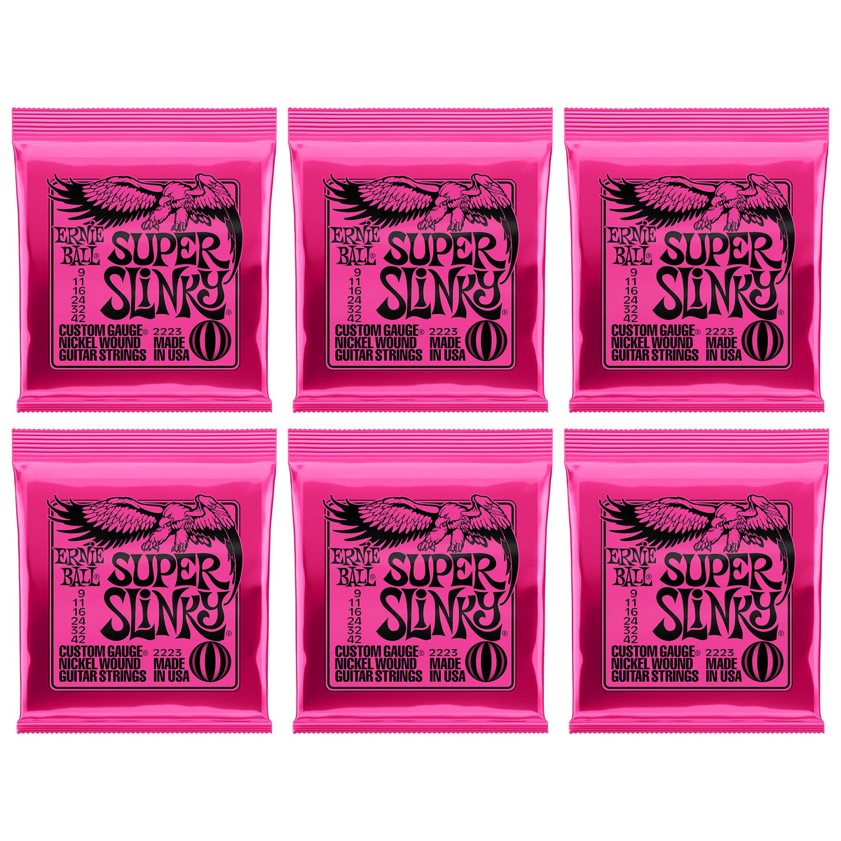 Ernie Ball Super Slinky Nickel Wound Electric Guitar Strings 6 Pack 9 42 Gauge