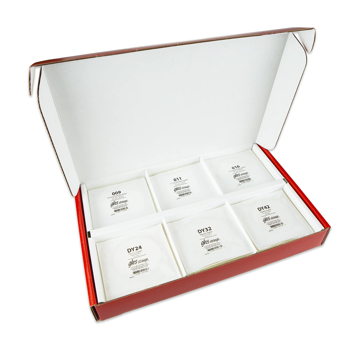 Ghs Guitar Boomers Round Wound Electric Guitar Strings - Gbl-12 Set - 12 Sets - 010-046 Many Ghs Strings Sets Are Now Available In 12 Pack Sets. 12 Pack Sets Represent A Tremendous Value...., Convenience And Availability. The Strings In These 12 Pack Sets Are Packaged In Ghs Nitro-Packs. The 12 Pack Box Is Your Way To Keep Your Boomers At The Ready, In A Convenient All-In-One Package. The 12 Sets Are Individually Organized In A Box, That'S Easy To Store In A Tour Bus And Keep Out On A Tech Bench.The Ghs Boomers Series Are The Flagship Set Of Ghs Strings. Used By Musicians In Every Genre, The Boomers Have Shown To Stand Up To Any Playing Style. Now Known As 'The Power String', Ghs Boomers Continue To Make Their Mark On Music Across The World. The Round Wound Guitar Set Is Made With Nickel-Plated Steel Wrapped Tightly Around A Round Core Wire. The Combination Provides The String With Its Bright Characteristic And Long-Lasting Tone. 6-String Electric Set: 010-013-017-Dy26-Dy36-Dy46 (12 Sets).
