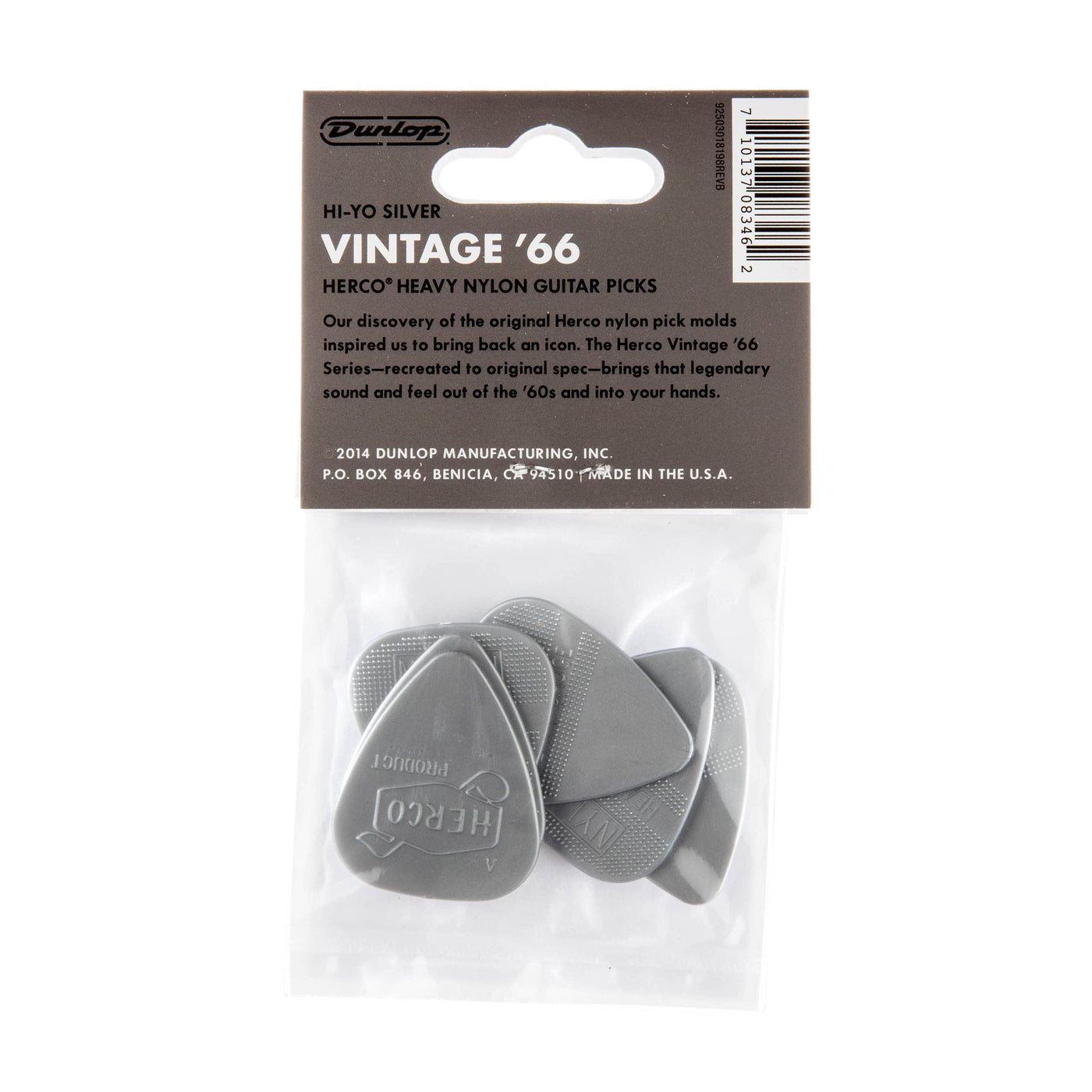 The Herco Nylon Pick Was The Top Choice Of Guitar Players When Guitar-Driven Music Began Its Meteoric Rise In The Mid-1960S. Dunlop Is Bringing Back That Picks Classic Tone And Feel With The Herco Vintage 66 Series. Digging Deep Into Our Vault, We Carefully Analyzed Our Collection Of Original Herco Molds And Picks From The 1960S. This Enabled Us To Create The Vintage 66 Series To Such Exacting Specification That Even Our Pick Experts Were At A Loss To Tell Them Apart From The Originals. Herco Vintage 66 Nylon Picks Are Available In Classic Bold Gold (Light) And Hi-Yo Silver (Heavy) As Well As Extra Light White. Heavy - Silver 6 Picks Per Players Pack