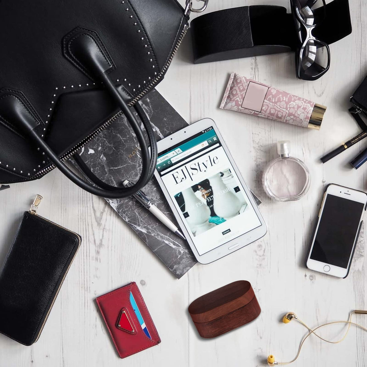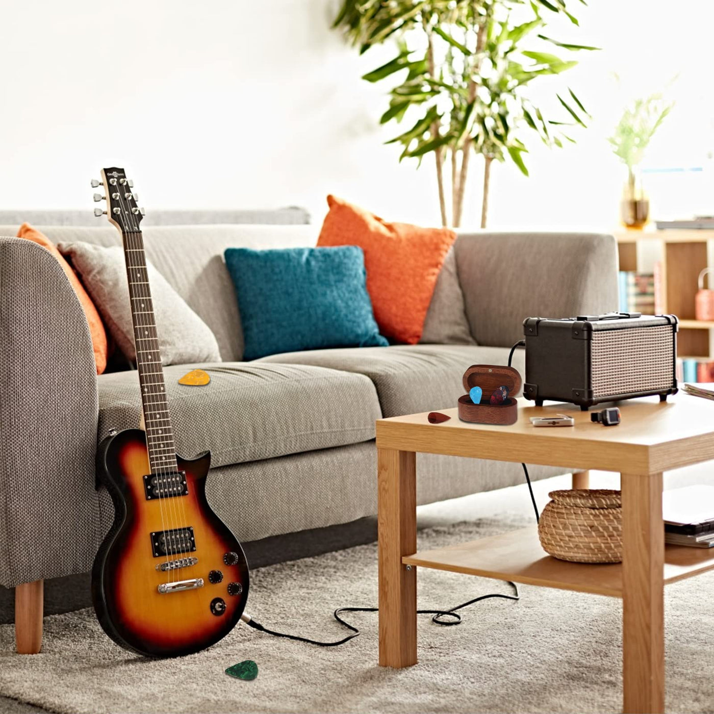 Mylywoo Sapele Guitar Pick Holder Set With 1 Rosewood Pick And 6 Celluloid Picks In 3 Thicknesses, Mini Wooden Jewelry Organizer