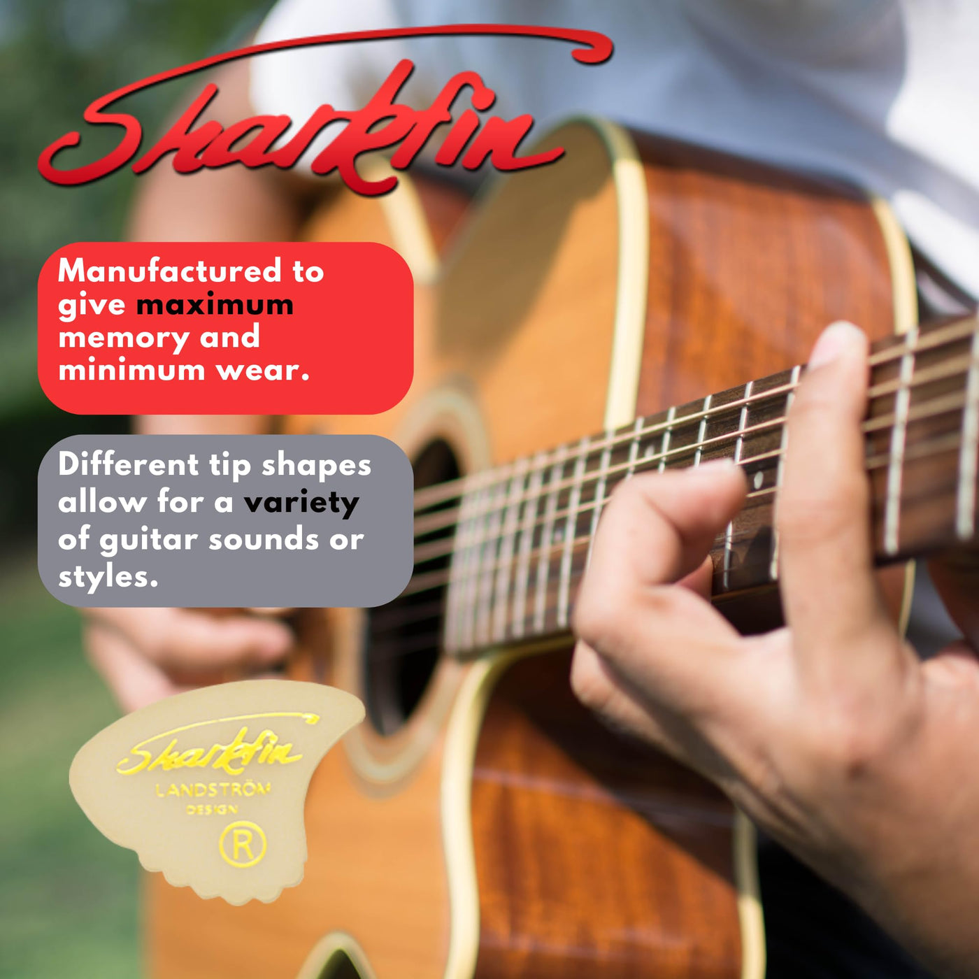 The Original Legendary Landstrom Design From Sweden Sharkfin Guitar Picks 10 Pack White Goldprint Medium