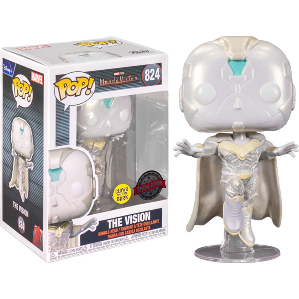 Phase Four Of The Mcu Is Finally Upon Us With Disneys New Series, Wandavision. Set After The Events Of Avengers 4: Endgame, Wandavision Follows The Story Of Wanda Maximoff And Vision, Who Suspect Things Are Not As They Seem As The Two Live Their Ideal Suburban Life. *Spoilers Below* Here We Have The Vision, Who Certainly Isnt Quite The Vision We All Know And Love. As Seen In A Mid-Credits Scene During The Episode Previously On, S.W.O.R.D. Reveals Haywards Project Cataract: The Original Vision, Now White, Activated Using Chaos Magic Energy From A Drone Previously Destroyed By Wanda. This May Be One Of The Coolest Marvel Pop! Vinyl Figures To Date, Especially Since He Comes With A Stunning Glow In The Dark Finish!