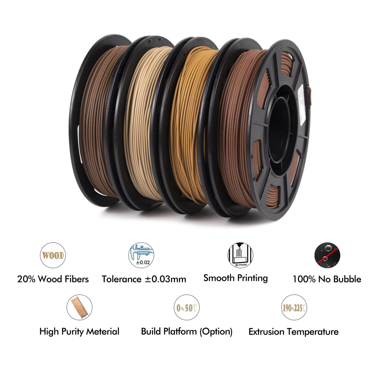 3D Printer Filament Bundle, Pla Filament Wood Filament, White Pine Wood, Sandal Wood, Yellow Pear Wood And Ebony Wood Filament 1