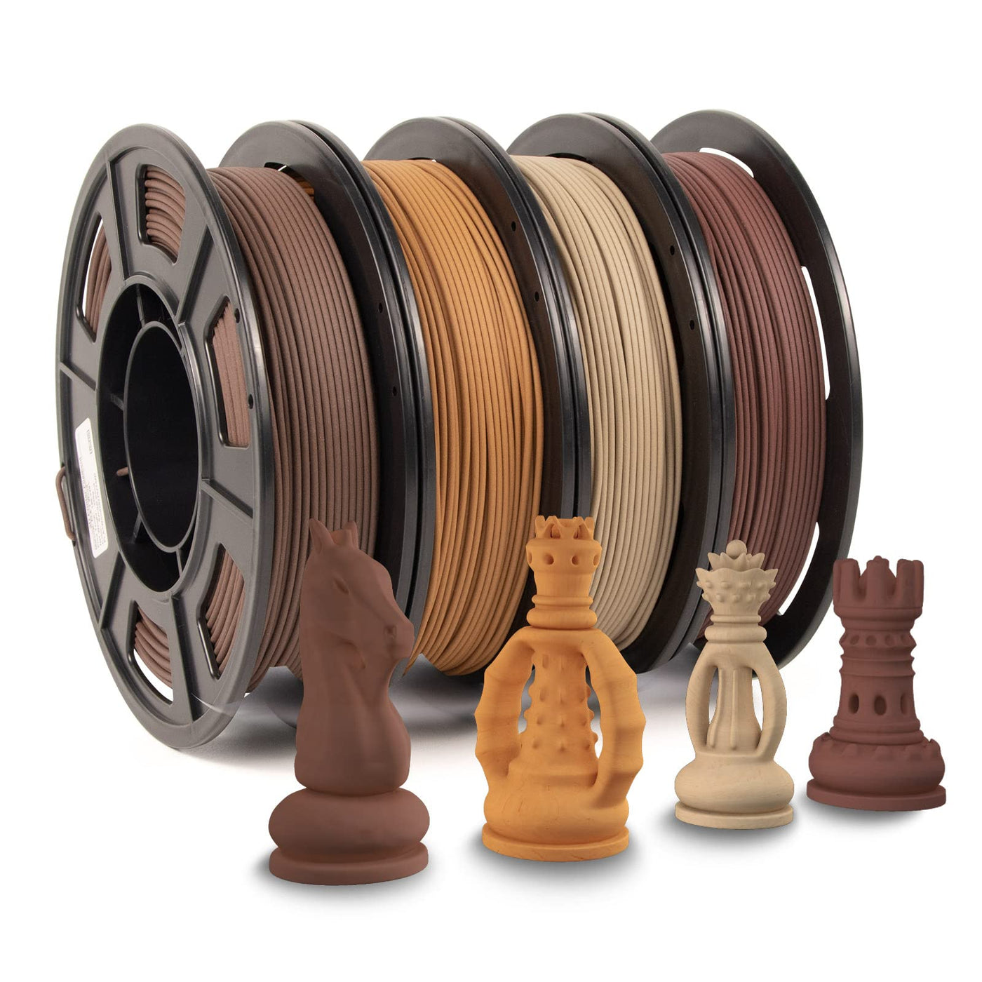 3D Printer Filament Bundle, Pla Filament Wood Filament, White Pine Wood, Sandal Wood, Yellow Pear Wood And Ebony Wood Filament 1.75Mm, 250G X 4 Pack,(20% Wood Powder+80% Pla+)