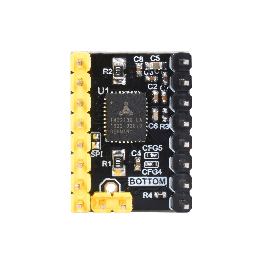 Q: What are the key features of the TMC2130 stepper motor driver?A: The TMC2130 stepper motor driver features high performance with a drive current of 1.2A and a peak current of 2A. It operates on both 12V and 24V DC input, supports 256 micro-stepping, and utilizes SPI for direct control on SKR boards. Additionally, it incorporates StealthChop technology for ultra-silent operation.